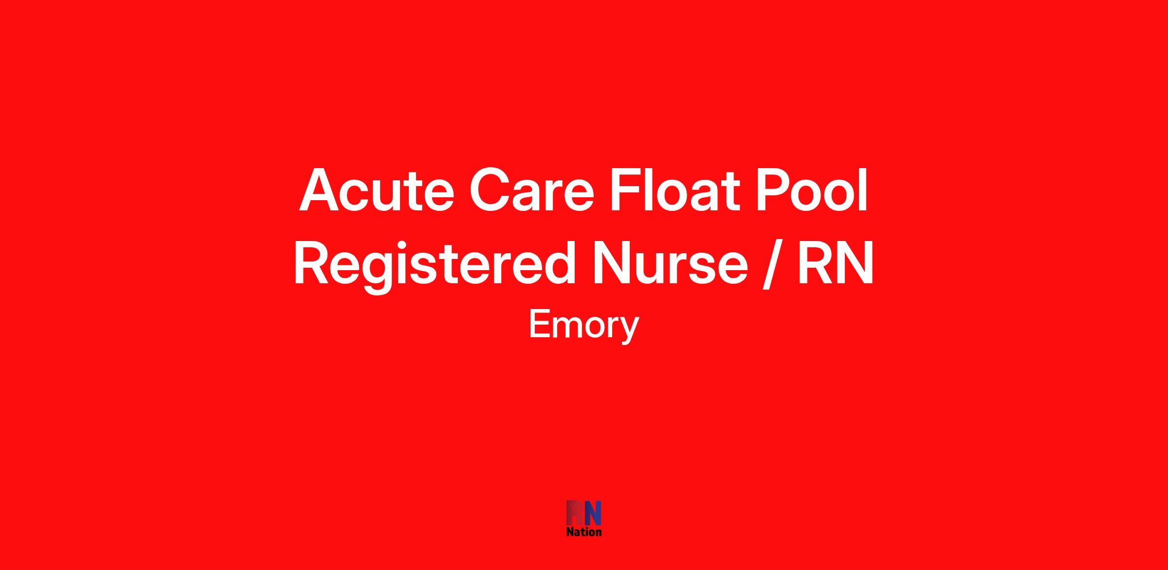 The purpose of the facility based/operating unit (OU) float pool position is to provide clinical resources in a variety of patient care departments throughout an Emory Healthcare (EHC) operating unit/facility. The float pool clinician expects to work in different clinical areas of an EHC facility based on skill set, patient volume, acuity, and the patient care and operational needs of said facility/OU.