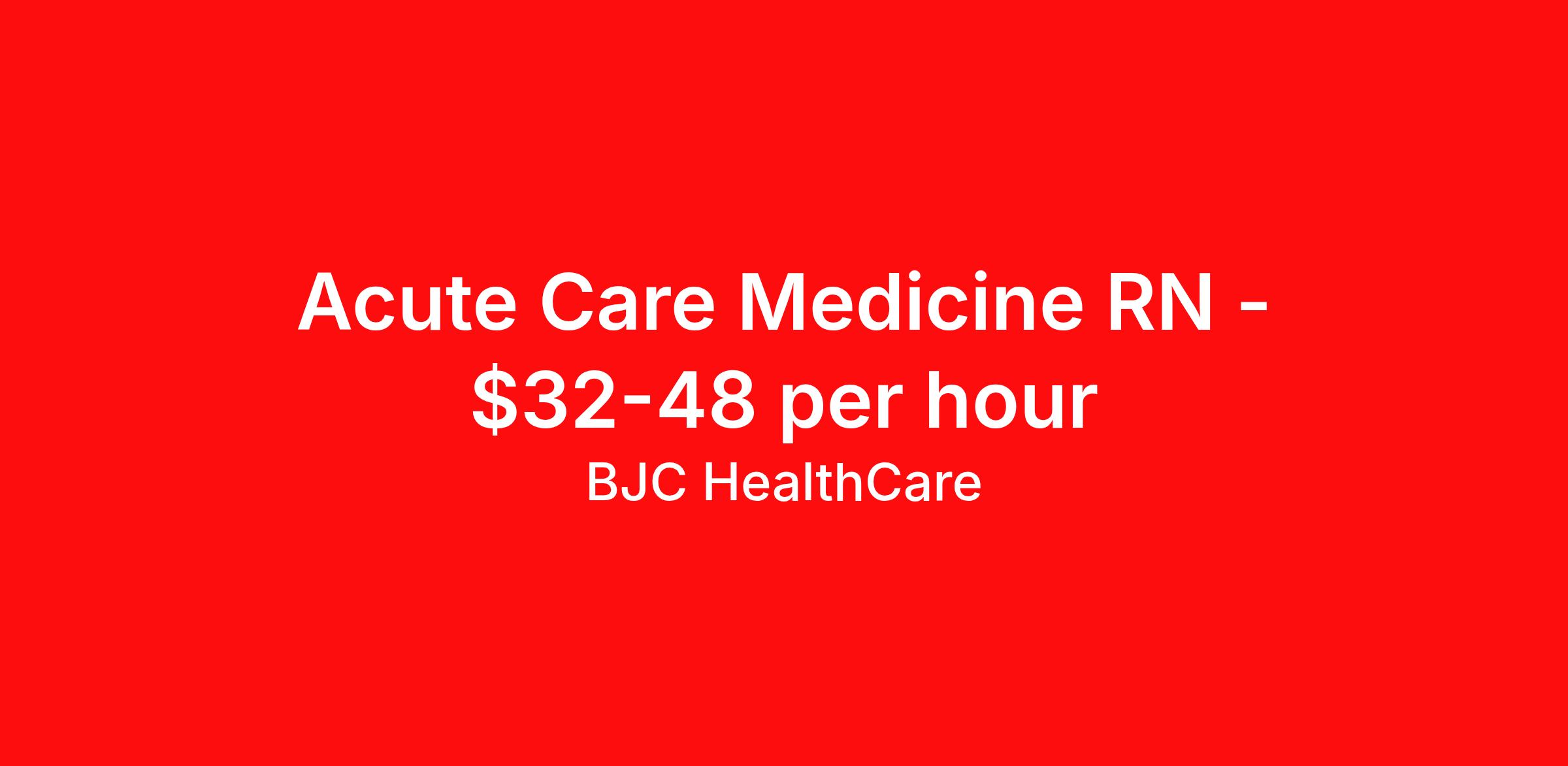 BJC HealthCare is seeking a Registered Nurse (RN) Acute Care for a nursing job in Saint Louis, Missouri. Job Description & Requirements Specialty: Acute Care Discipline: RN Duration: Ongoing Employment Type: Staff At Vivian Health, candidates with updated profiles have the best success. Make sure yours is complete so recruiters can match you to the perfect job! Additional Information About the Role UNIT DESCRIPTION Unit 5200 Acute Care Medicine at Barnes-Jewish Hospital (South Campus) 17-Bed Unit BENEFITS INCLUDE: May be eligible for sign-on bonus CAREER LADDER: The BJC Registered Nurse Career Ladder differentiates BJC as the place for nurses to work in the greater St. Louis area. This is a tool to empower nurses to work at the top of their license and own their career progression. The BJC RN Career Ladder promotes professional development, leadership, collaboration, education and service excellence and gives staff the opportunity to continue doing what they do best - caring for patients - while having the opportunity to advance to the next step in their career. Moves to higher ladder levels will result in a percentage increase of current pay that aligns with the new job description. Overview Preferred Qualifications Role Purpose Provides direct patient care activities including assessment, diagnosis, planning implementation, and evaluation within the guidelines of the standards of nursing care. Responsibilities Promotes patient and family centered care in a healing environment. Educates patients and their families on how to manage their illness or injury, including post treatment home care needs and medication administration. Participates in activities that promote patient safety, quality and regulatory compliance. Participates in professional development. Develops, implements, and documents individual plans of care with defined goals in collaboration with other members of the interprofessional team and patient, family or caregiver in accordance with the established guidelines and standards of nursing care. Proactively plans and ensures communication of the plan of care across the continuum of care. Uses critical nursing skills to assess and evaluate physical, psychosocial, and emotional needs according to standards of care. Assess patient preferences and barriers to involvement in care, including their values, emotional, spiritual, cultural, and population-specific needs. BJC has determined this is a safety-sensitive position. The ability to work in a constant state of alertness and in a safe manner is an essential function of this job. Minimum Requirements Education Nursing Diploma/Associate's - Nursing Experience No Experience Supervisor Experience No Experience Licenses & Certifications RN Preferred Requirements Education Bachelor's Degree - Nursing Experience Benefits and Legal Statement BJC Total Rewards At BJC we’re committed to providing you and your family with benefits and resources to help you manage your physical, emotional, social and financial well-being. Comprehensive medical, dental, vison, life insurance, and legal services available first day of the month after hire date Disability insurance* paid for by BJC Annual 4% BJC Automatic Retirement Contribution 401(k) plan with BJC match Tuition Assistance available on first day BJC Institute for Learning and Development Health Care and Dependent Care Flexible Spending Accounts Paid Time Off benefit combines vacation, sick days, holidays and personal time Adoption assistance To learn more, go to our Benefits Summary. *Not all benefits apply to all jobs The above information on this description has been designed to indicate the general nature and level of work performed by employees in this position. It is not designed to contain or be interpreted as an exhaustive list of all responsibilities, duties and qualifications required of employees assigned to this job. Equal Opportunity Employer BJC HealthCare Job ID 104588. Posted job title: Acute Medicine Nurse - Full Time Nights About BJC HealthCare BJC HealthCare is one of the largest nonprofit health care organizations in the United States, delivering services to residents primarily in the greater St. Louis, southern Illinois and southeast Missouri regions. With net revenues of $6.3 billion and more than 30,000 employees, BJC serves patients and their families in urban, suburban and rural communities through its 14 hospitals and multiple community health locations. Services include inpatient and outpatient care, primary care, community health and wellness, workplace health, home health, community mental health, rehabilitation, long-term care and hospice. BJC is the largest provider of charity care, unreimbursed care and community benefits in the state of Missouri. BJC and its hospitals and health service organizations provide $785.9 million annually in community benefit. That includes $410.6 million in charity care and other financial assistance to patients to ensure medical care regardless of their ability to pay. In addition, BJC provides additional community benefits through commitments to research, emergency preparedness, regional health care safety net services, health literacy, community outreach and community health programs and regional economic development.