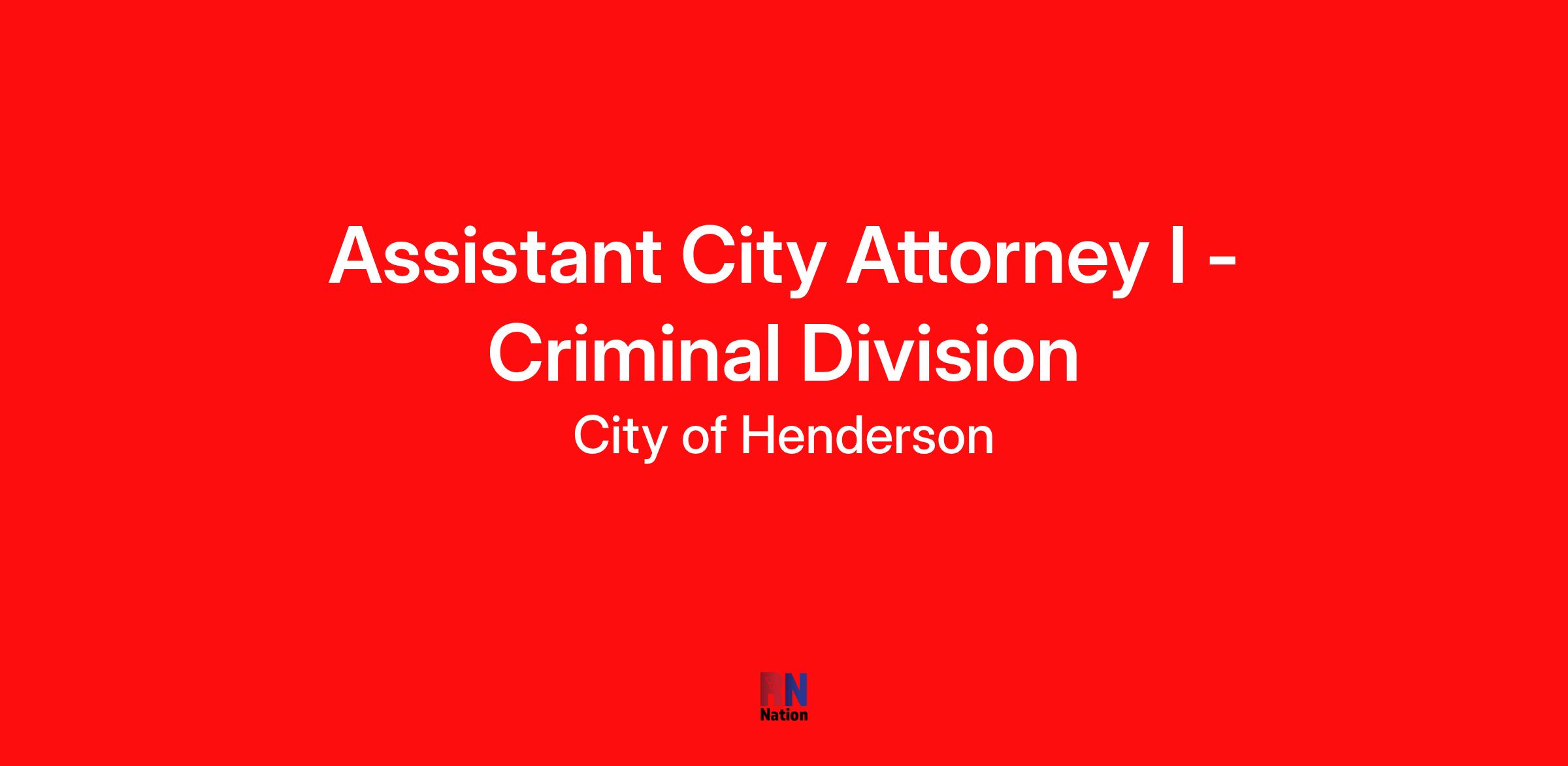 The City of Henderson announces an examination to create an eligibility list and to fill one (1) vacancy for the classification of Assistant City Attorney I - Criminal Division within the City Attorney's Department. The eligibility list may be utilized to fill vacancies for this classification for up to one (1) year.