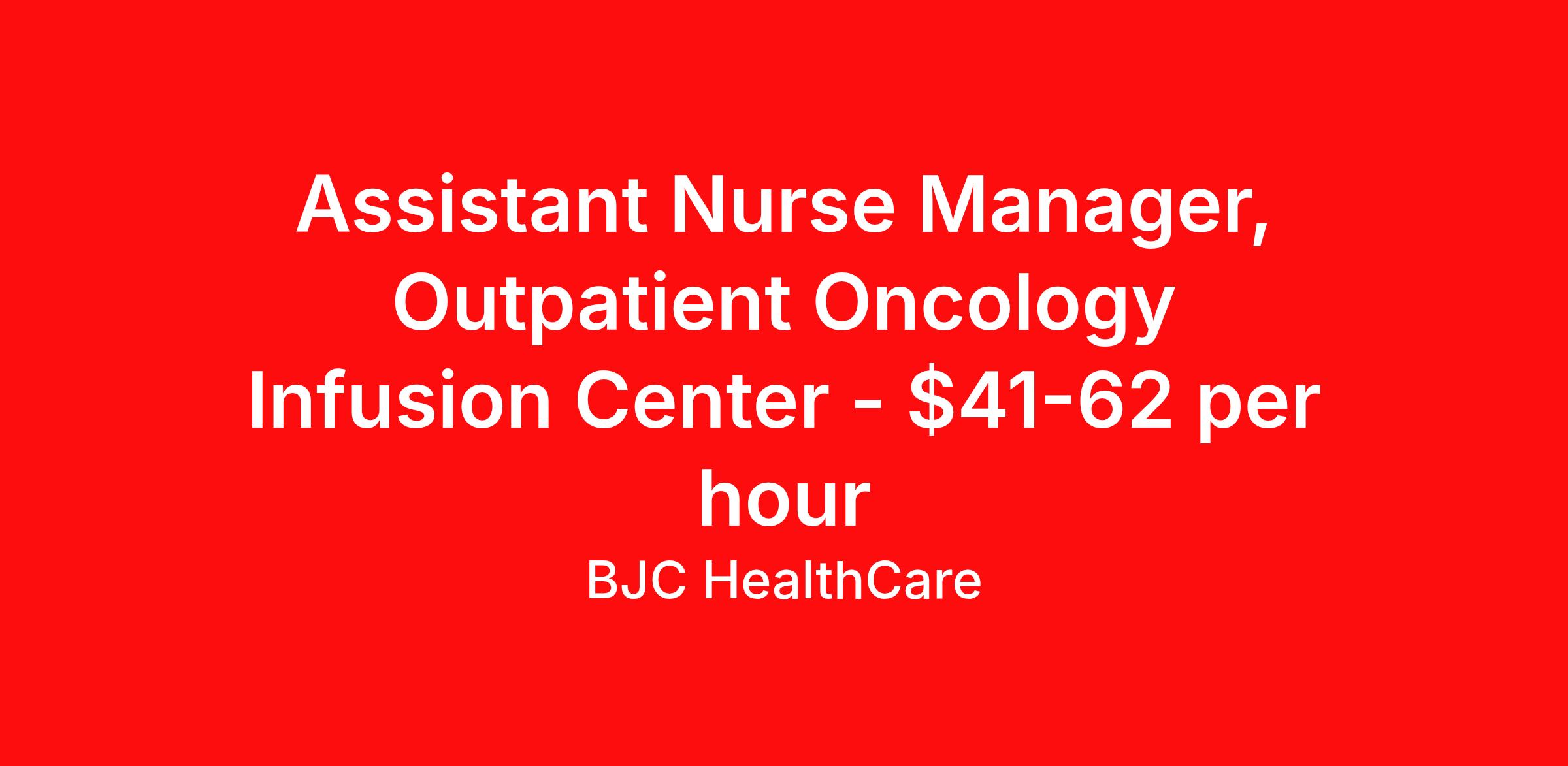 Assistant Nurse Manager, Outpatient Oncology Infusion Center - $41-62 per hour