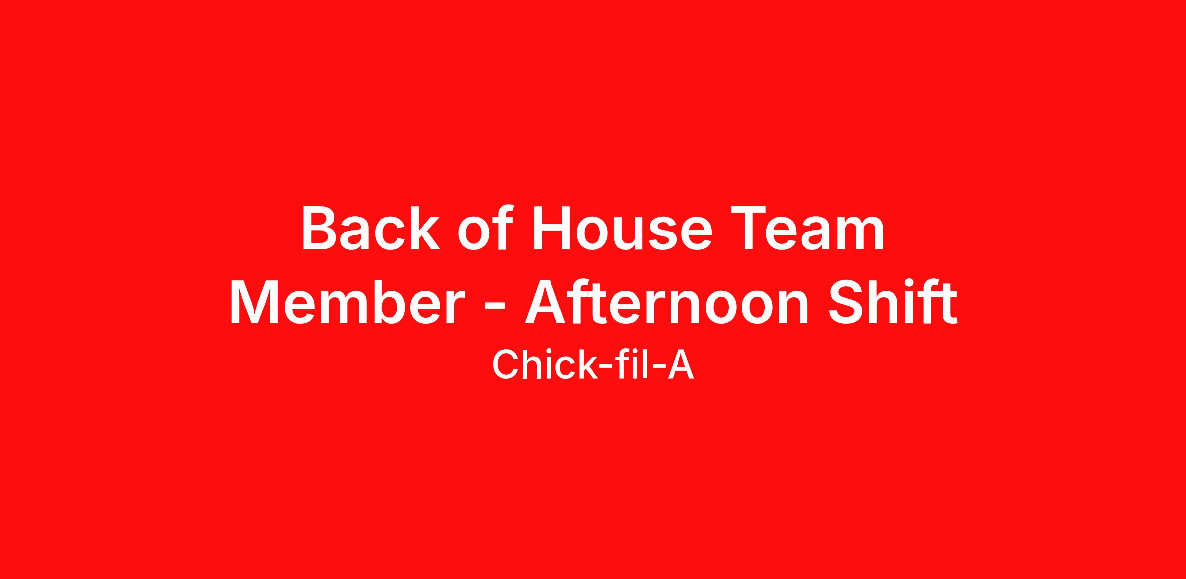 At Chick-fil-A, the Team Member role is more than just a job, it's an opportunity. In addition to working directly for an independent Operator, team members gain life experience that goes far beyond just serving a great product in a friendly environment. Chick-fil-A is a great opportunity for people of all ages and backgrounds, and no experience is necessary. As a BOH Team Member, you will support the kitchen team, assemble food & drink orders quickly and accurately, and ensure each guest leaves with a smile. We are looking for friendly, enthusiastic people who enjoy serving customers. We will teach you everything else you need to know!