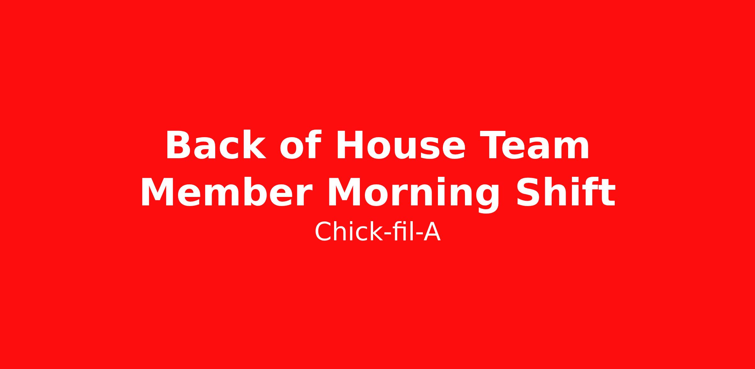 At Chick-fil-A, the Team Member role is more than just a job, it's an opportunity. In addition to working directly for an independent Operator, Team Members gain life experience that goes far beyond just serving a great product in a friendly environment. Chick-fil-A is a great opportunity for people of all ages and backgrounds, and no experience is necessary. As a Back of House Team Member, you will support the kitchen team, assemble food orders quickly and accurately, and ensure each guest leaves with a smile. We are looking for friendly, enthusiastic, and competitive people who enjoy serving others. We will teach you everything else you need to know!