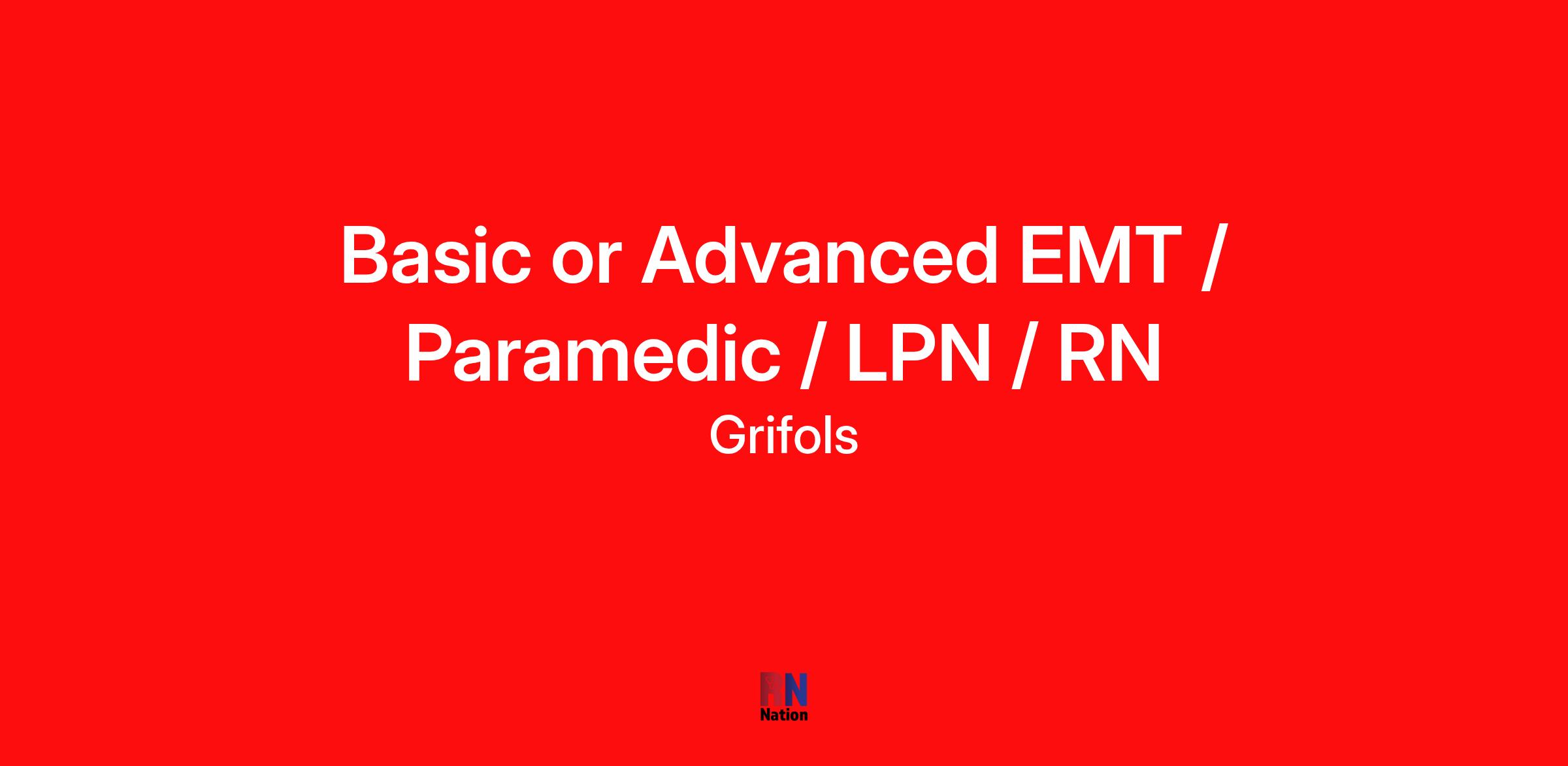 Seeking EMT Basic, EMT Advanced, Paramedic, LVN, LPN or RN for Plasma Donation Center!