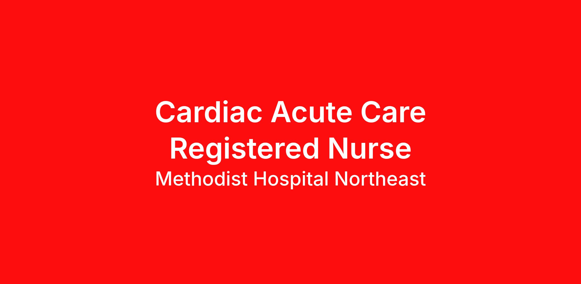 Introduction Do you have the career opportunities as a Cardiac Acute Care Registered Nurse you want in your current role? We invest in what matters most to nurses like you – at home, at work, and at every stage in your career. We have an exciting opportunity for you to join Methodist Hospital Northeast which is a part of the nation’s leading provider of healthcare services, Methodist Healthcare. Do you want to work where you have a voice? Nurses are at the forefront of our commitment to the care and improvement of human life. At HCA Healthcare, there are many ways for nurses to have a voice through professional practice councils, advisory councils, vital voices surveys, and units of distinction. We learn from our multi-generational nursing family. We partner with our Nurses at Methodist Hospital Northeast! Job Summary and Qualifications We would love for you to join our wonderful family of nurses and nursing support on our Cardiovascular Telemetry Unit! At Methodist Hospital Northeast, you have just found the calling you were looking for. We are looking for dedicated and compassionate team members to join our family, where your personal experiences and commitment to excellence can make a long lasting impact on the lives of our patients. As a nurse with us, you'll find more than just a job; you'll discover a place where you can grow both personally and professionally. We are committed to you and your needs! On Cardiovascular telemetry, you'll be part of a collaborative environment that values your contributions and encourages you to bring your unique perspectives to the forefront of patient care, and to our team! Our dedicated team achieved 100 % employee engagement participation , using their voice to make powerful change in the best way. This survey was a catalyst to help us ensure our staff feel safe in the workplace and have the tools they need to provide the best patient care. If you are passionate about making a difference and looking for a supportive environment that fosters personal and professional growth, we invite you to apply and become part of our “one heart, one team”! What you will do in this role: Assess patient condition during admission and during each shift, identifying and reporting any changes in patient status. Perform procedures or other functions as ordered by the medical provider. Document the administration of care in the patient medical record in a timely and thorough manner. Perform the administration of prescribed medications and monitors response. Maintain a knowledge of medications, procedures, and equipment used in the care of cardiac and medical-surgical patients. What qualifications you will need: Associate’s Degree in Nursing or RN Diploma required Bachelor’s Degree in Nursing preferred Minimum of six (6) months of clinical experience as a licensed Registered Nurse required Current Registered Nurse License in the State of Texas or Multi-State Compact License (Employees with RN Compact License are required to obtain Texas RN License within 90 days of hire date) Current American Heart Association BLS Certification required Advanced Cardiac Life Support (ACLS) preferred Benefits Methodist Hospital Northeast, offers a total rewards package that supports the health, life, career and retirement of our colleagues. The available plans and programs include: Comprehensive benefits for medical, prescription drug, dental, vision, behavioral health and telemedicine services Wellbeing support, including free counseling and referral services Time away from work programs for paid time off, paid family leave, long- and short-term disability coverage and leaves of absence Savings and retirement resources , including a 401(k) Plan with a 100% match on 3% to 9% of pay (based on years of service), Employee Stock Purchase Plan, flexible spending accounts, preferred banking partnerships, retirement readiness tools, rollover support and financial wellbeing counseling Education support through tuition assistance, student loan assistance, certification support, dependent scholarships and a partnership with Galen College of Nursing Additional benefits for fertility and family building, adoption assistance, life insurance, supplemental health protection plans, auto and home insurance, legal counseling, identity theft protection and consumer discounts Learn more about Employee Benefits Note: Eligibility for benefits may vary by location. "Nurses play a pivotal role and are the backbone of healthcare delivery. At HCA Healthcare, we are dedicated to ensuring nurses have necessary tools and resources to provide world-class patient care, advocating for the profession and helping to shape the future of nursing." Sammie Mosier, DHA, MA, BSN, NE-BC Senior Vice President and Chief Nursing Executive, HCA Healthcare Methodist Hospital Northeast is a 232 bed, full service hospital. We are home to the Joint Replacement Academy. We offer the latest treatment options for knee and hip pain. We house an impressive neurosurgical program. This program offers services from elective spine surgeries to advanced and comprehensive brain and spine care. We are recognized by the American Heart Association/American Stroke Association as a Certified Primary Stroke Center. We handle patients with urgency. We are acknowledged by the American College of Cardiology as an Accredited Chest Pain Center with Primary PCIa. All complaints are handled crucially. We are identified by the American Nurses Credentialing Center for having a Pathway to Excellence Program. We dedicate resources to our employees. We have received the Mission: Lifeline® Bronze Receiving Quality Achievement Award. This is awarded for implementing specific quality improvements. These measures were outlined by the American Heart Association. The improvements impact the treatment of patients who suffer severe heart attacks. This was outlined by the Texas Award for Performance Excellence. We have been nationally recognized by Leapfrog’