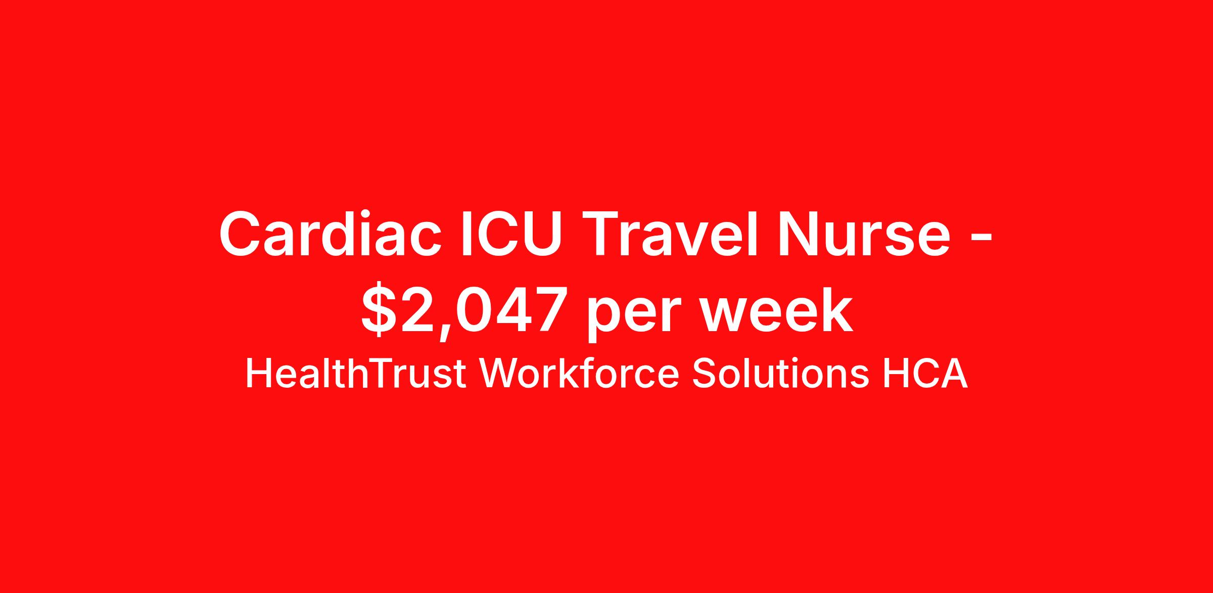 HealthTrust Workforce Solutions HCA is seeking a travel nurse RN CVICU for a travel nursing job in Hudson, Florida. Job Description & Requirements Specialty: CVICU Discipline: RN Duration: 13 weeks 36 hours per week Shift: 12 hours, nights Employment Type: Travel Entrust Your Career to HealthTrust! At HealthTrust, we believe that healthcare is not defined by the four walls in which it is practiced; it’s defined by its people. We pride ourselves on crafting opportunities that expand skill sets, broaden career horizons, provide economic stability, and cultivate personal growth. HealthTrust Offers: Competitive Pay Packages Guaranteed hours Weekly direct deposit options 401k with Company Match Earn up to $750 for referrals Free Private Furnished Housing or Tax-Free Subsidy To get started, you will need: RN's a minimum of 1 year in specialty Allied 6 months of experience An adventurous spirit and fierce dedication Degree in corresponding specialty as required Appropriate certifications and licensure as needed for the specific position HealthTrust Benefits: Opportunities for a lifetime: When you become a part of the HCA family, you will have exclusive access to more opportunities than any other healthcare system in the nation. At HWS, we help open the door to a lifetime of lasting career opportunities. A culture of care: Our clinicians have made HWS an industry leader for over 25 years. We are passionate about our mission that, above all else, we are committed to the care and improvement of human life. Career Development: As a wholly owned subsidiary of HCA Healthcare, HWS is a preferred partner to thousands of top-performing hospitals. We provide our healthcare professionals with first-priority access to more than 200,000 jobs nationwide. We are uniquely positioned to offer you exclusive and direct access to HCA Healthcare’s vast network of facilities. Let us open the door to nationwide opportunities that fit your lifestyle! We are an equal opportunity employer and value diversity at our company. We do not discriminate on the basis of race, religion, color, national origin, gender, sexual orientation, age, marital status, veteran status, or disability status. Job Requirements Certifications ACLS (Required) NIHSS (Required) BLS (Required) HealthTrust Workforce Solutions HCA Job ID 870924. Posted job title: Travel Nurse - Cardiac ICU About HealthTrust Workforce Solutions HCA At HealthTrust Workforce Solutions, healthcare is not just about the four walls of a facility but about the people who provide and receive care. Our focus is on empowering healthcare professionals to deliver exceptional patient experiences by providing them with the necessary skills, tools, and support. We partner with healthcare facilities nationwide to ensure that the right professionals are in the right roles. We prioritize our clinicians by giving them a voice and access to opportunities to fulfill their mission of improving lives by providing quality patient care. We are committed to our core values of Trust, Innovation, Adaptability, Courage, and Accountability. We are dedicated to positively impacting the healthcare industry by providing first-priority access to more than 200,000 jobs nationwide to our healthcare professionals. Join us and be part of the HealthTrust family, where you can make a difference every day. We embrace our changing environment, and we maintain a culture that has a rich tradition of transforming itself to meet the challenges of the future. MISSION STATEMENT While putting great people in the right roles is essential, our mission is far greater. We want our clinicians to be part of the HealthTrust family, where healthcare professionals have a voice and are empowered with the right tools and opportunities to fulfill their personal mission of improving lives. Plus, as a preferred partner to thousands of top-performing hospitals, we provide our healthcare professionals with first-priority access to more than 200,000 jobs nationwide. Benefits Dental benefits Vision benefits Referral bonus Continuing Education Life insurance