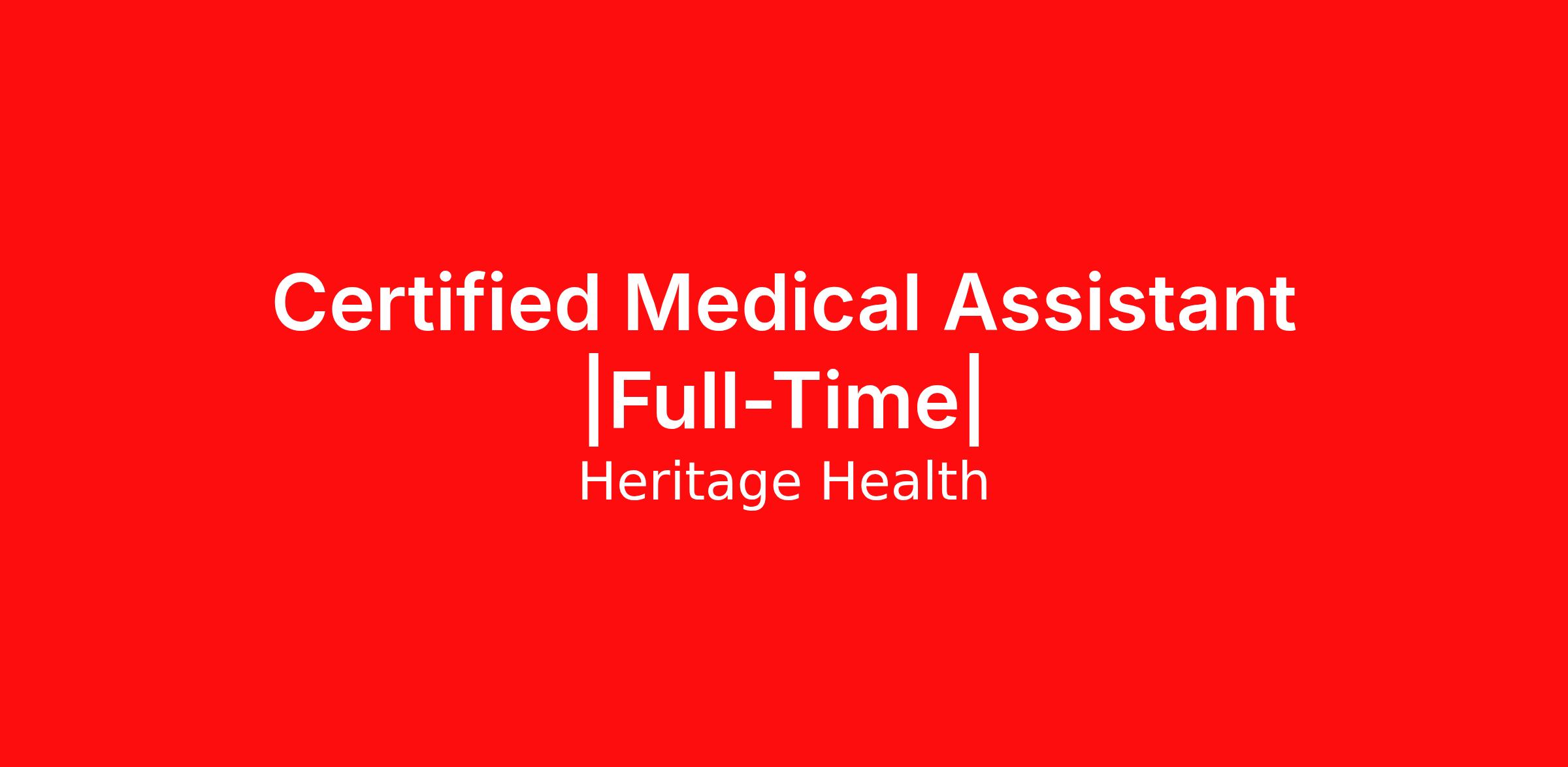 Heritage Health is seeking a full-time (1.0 FTE) Certified Medical Assistant to join our team in Post Falls, Idaho. We prioritize work-life balance and offer a supportive environment to ensure our team members thrive both professionally and personally.