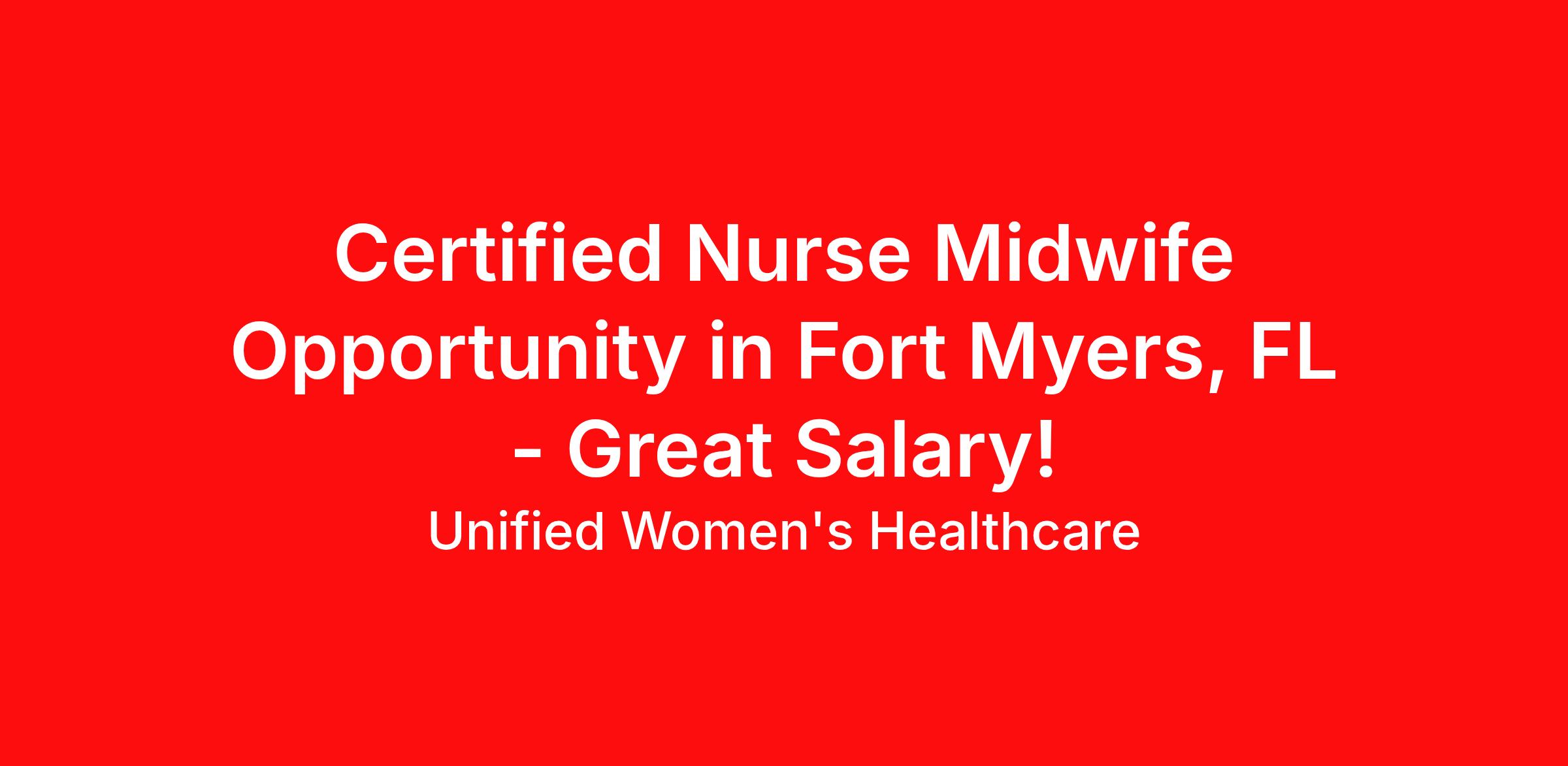 Overview Unified Women's Healthcare is the leading national platform for women's healthcare. Our affiliated practice in Fort Myers, FL, is seeking a Full Time Certified Nurse Midwife (CNM). Certified nurse midwife (CNM) is responsible for working closely with both gynecologic and obstetric patients, assisting in births, and providing health care to women post-pregnancy. The CNM will assist with prenatal care, labor, delivery, and postpartum care, and may also provide reproductive care, treatment, and education to female patients. Position Highlights: Join an established and successful practice that has served the Fort Myers community for over 30 years Large single-specialty group - 17 MDs (4 GYN only), 9 Midwives, 4 PAs 1 Call Day per Week Post-call Day Off 1:6 Weekend Call Flexible schedule: 3 or 4 day work week Delivering hospital: Health Park Medical Center (Level III NICU) Must be experienced with high-risk OB Compensation/Benefits Highlights: $137,000 Salary Labor & Delivery experience required Paid time off $2,000 CME reimbursement annually paid time off Comprehensive health, dental, and vision 401k with matching Short- and long-term disability, company paid life insurance Company paid malpractice coverage Supportive and appreciative culture Requirements: AMCB Certified Nurse-Midwife Graduate of a nurse-midwifery education program accredited by ACNM Accreditation Commission for Midwifery Education (ACME) Master's degree in Nursing (MS/MSN) Active and unrestricted state registered nurse (RN) license CPR and NALS Certification Current Unrestricted DEA License or ability to obtain About Unified Women's Healthcare is affiliated with the largest, physician-owned Ob-Gyn practice network in the nation, with more than 900 affiliated practices and 2,500 providers in 17 states and Washington DC. Choose an opportunity from dozens of cities; urban to rural. The national footprint of our medical affiliates provides candidates with a variety of practice settings and career opportunities that will fit their professional practice goals. As a provider practicing with a medical affiliate in the Unified network, you will see the benefit of being affiliated with a large, national women's healthcare company while knowing that governance and clinical decision-making remains the exclusive domain of providers. We are advocates for the Ob-Gyn medical affiliates in our network, advancing the business of medicine so they can focus solely on the practice of medicine. We help our medical affiliates both innovate and expand while providing tools, training, support, and additional practice resources. Our medical affiliate is a drug-free workplace and an Equal Opportunity Employer. Keywords: CNM, Certified Nurse Midwife, midwife, midwives LI-Onsite