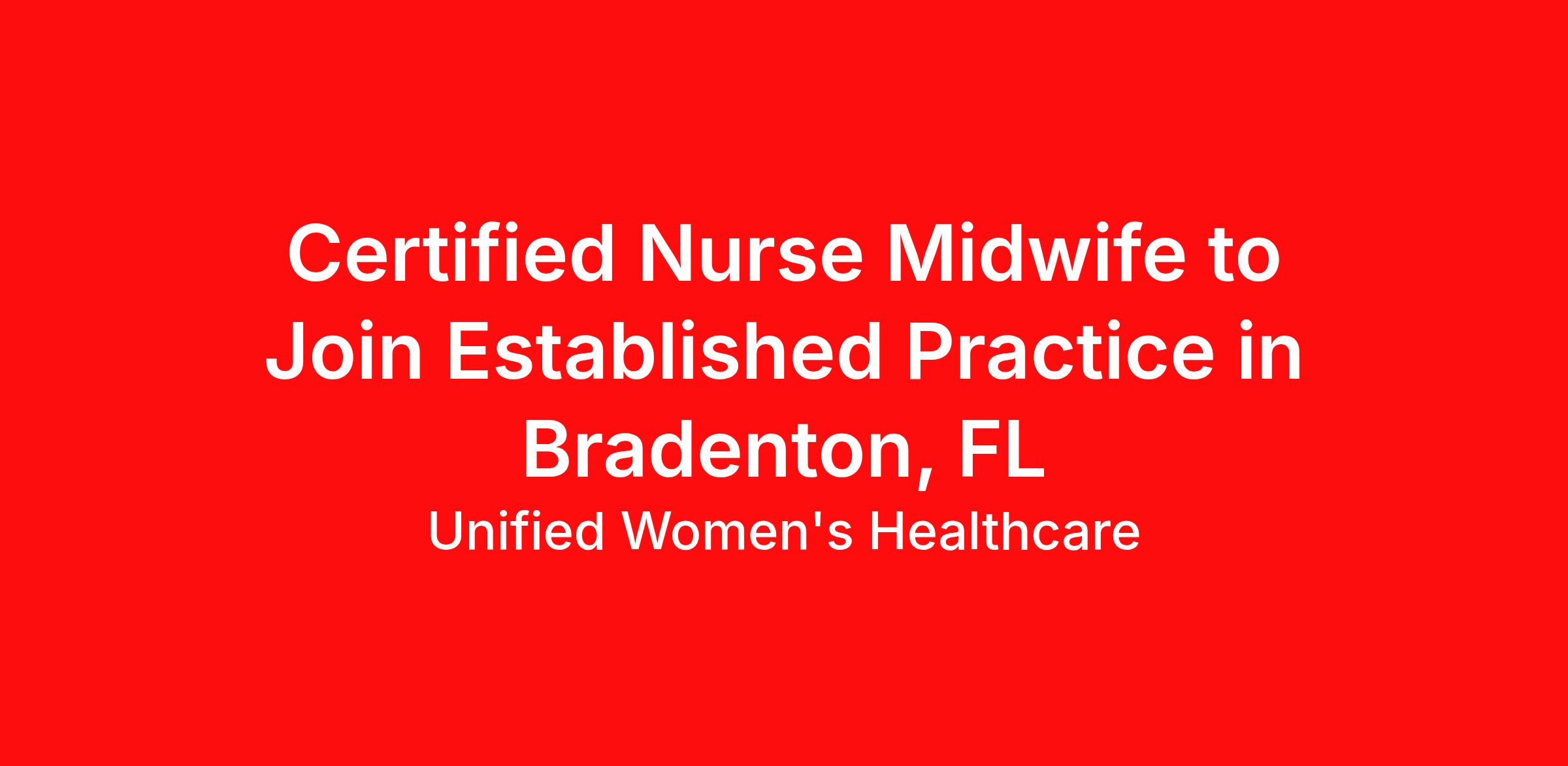 Overview Unified Women's Healthcare is the leading national platform for women's healthcare. Our affiliated practice in Bradenton, FL , is seeking a Full Time Certified Nurse Midwife (CNM). The practice welcomes new graduates and experienced candidates to apply. Position Highlights: Full service, state of the art, established practice with 5 MDs, 3 Certified Nurse Midwives, and 1 Nurse Practitioner 20-30 deliveries per month as a group Traditional model of OB deliveries and office 4.5 day work week 1:4 call schedule. CNM takes first call Deliveries performed at Manatee Memorial Hospital No high risk deliveries Compensation/Benefits Highlights: Compensation starting at $115,000, based on experience 3 weeks Paid time off plus rotation holidays CME reimbursement Comprehensive health, dental, and vision 401k with matching Short- and long-term disability, company paid life insurance Company paid malpractice coverage Supportive and appreciative culture Requirements: AMCB Certified Nurse-Midwife Graduate of a nurse-midwifery education program accredited by ACNM Accreditation Commission for Midwifery Education (ACME) Master's degree in Nursing (MS/MSN) Active and unrestricted state registered nurse (RN) license CPR and NALS Certification Current Unrestricted DEA License or ability to obtain One year of full-time experience as a CNM is preferred About the City Bradenton is located between Tampa and Sarasota (less than 1 hour respectively) and nestled along the Gulf of Mexico and Manatee River. There are over 20 miles of sandy white beaches on the west side of the city and Bradenton Riverwalk on the east side. Bradenton is rich in history and cultural arts and is home to "Village of the Arts", an eclectic live/work/play community with galleries, studios, restaurants, bakeries, specialty shops and healing art centers housed in colorfully restored 1920s & 1930s historic cottages About Unified Women's Healthcare is affiliated with the largest, physician-owned Ob-Gyn practice network in the nation, with more than 900 affiliated practices and 2,500 providers in 17 states and Washington DC. Choose an opportunity from dozens of cities; urban to rural. The national footprint of our medical affiliates provides candidates with a variety of practice settings and career opportunities that will fit their professional practice goals. As a provider practicing with a medical affiliate in the Unified network, you will see the benefit of being affiliated with a large, national women's healthcare company while knowing that governance and clinical decision-making remains the exclusive domain of providers. We are advocates for the Ob-Gyn medical affiliates in our network, advancing the business of medicine so they can focus solely on the practice of medicine. We help our medical affiliates both innovate and expand while providing tools, training, support, and additional practice resources. Our medical affiliate is a drug-free workplace and an Equal Opportunity Employer. Keywords: CNM, Certified Nurse Midwife, midwife, midwives LI-Onsite