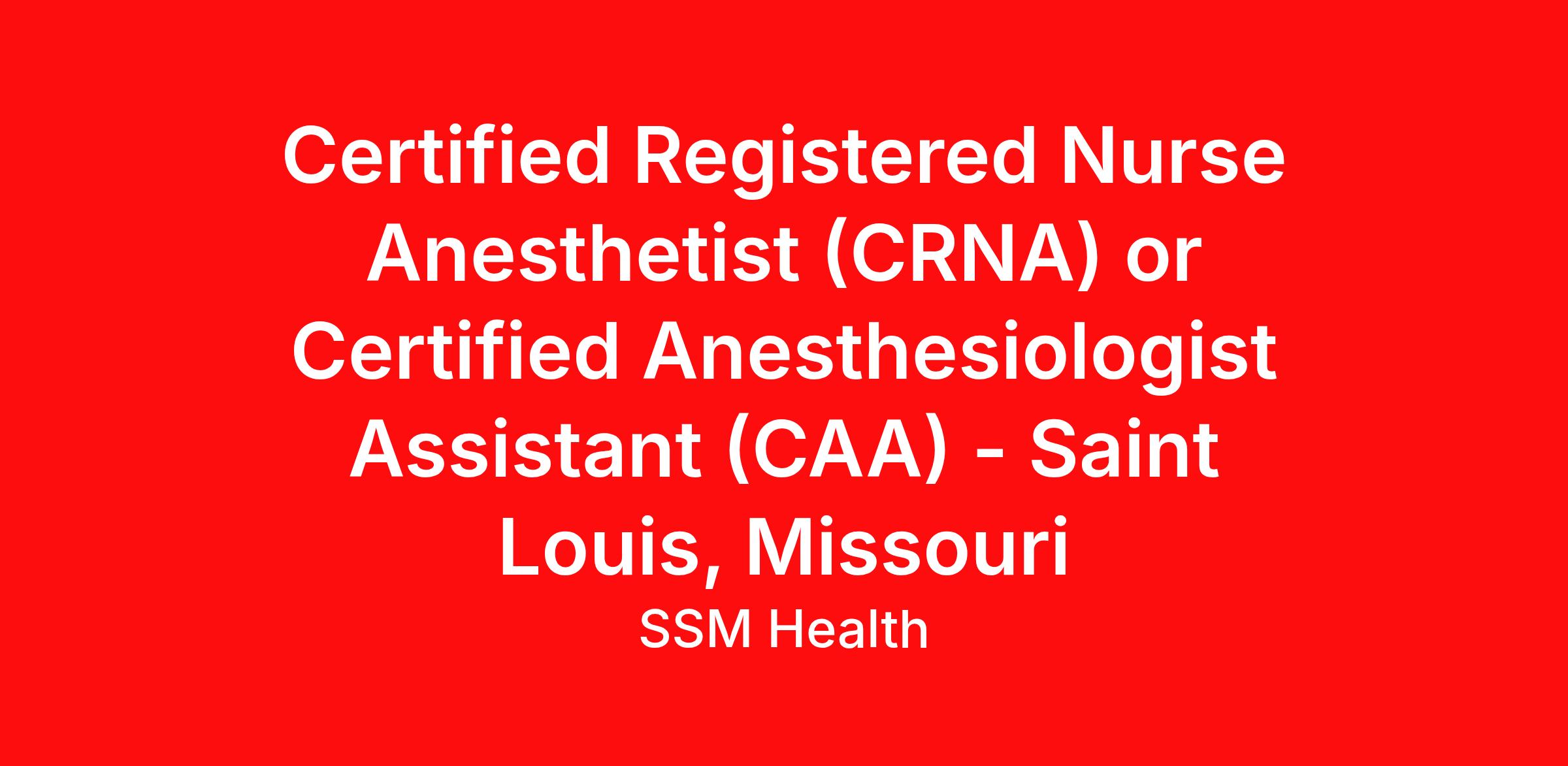 Certified Registered Nurse Anesthetist (CRNA) or Certified Anesthesiologist Assistant (CAA) - Saint Louis, Missouri
