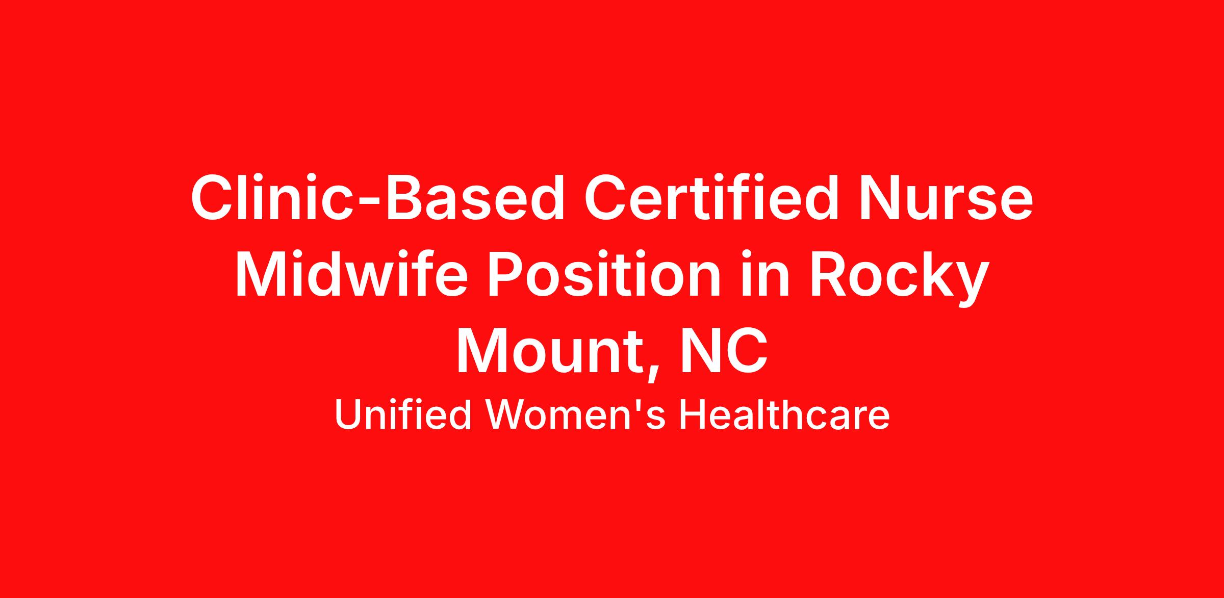 Overview Our affiliate, Unified Women's Healthcare of the Carolinas, is looking for a Full-Time Clinic-Based Certified Nurse Midwife to join their Women's Health Care Center in Rocky Mount, NC. Join a growing, collaborative group of physicians, certified nurse midwives, and women's health nurse practitioners who provide a team approach to patient care within a supportive practice culture. Certified nurse midwife (CNM) is responsible for working closely with both gynecologic and obstetric patients, and providing health care to women post-pregnancy. The CNM will assist with prenatal care, postpartum care, and may also provide reproductive care, treatment, and education to patients. Position Highlights: The practice team consists of 4 OB/GYN physicians, 1 GYN only physician, 2 certified nurse midwives, 1 women's health nurse practitioner, and a great administrative support team. Established and successful practice that has served the Rocky Mount area for over 50 years. Patient Census in Clinic: up to 20-25 per day. Duties include seeing patients, completing charting, responding to patient phone calls and messages, and providing patient education 5 day per week work schedule with ½ day Fridays, no nights, weekends, or hospital shifts. Role is centered on working primarily with obstetrics patients but will also see some benign gynecology patients. Strong work/life balance. No call required for this position, clinic only. Ability to build up own patient clinic practice within the group. Competitive salary and benefits package. Warm and supportive work environment with a physician team committed training and mentorship. Compensation/Benefits Highlights: Competitive compensation Paid time off CME reimbursement annually paid time off Comprehensive health, dental, and vision benefits 401k with matching Company paid malpractice coverage Supportive and appreciative culture Requirements: AMCB Certified Nurse-Midwife Graduate of a nurse-midwifery education program accredited by ACNM Accreditation Commission for Midwifery Education (ACME) Master's degree in Nursing (MS/MSN) Active and unrestricted state registered nurse (RN) license CPR and NALS Certification Current Unrestricted DEA License or ability to obtain One year of full-time experience as a CNM is preferred Labor & Delivery experience preferred City/Location Highlights: Rocky Mount is in the center of all sports tourism, family fun and activities, culture, history, and diversity. It's less than an hour drive from the state's capital of Raleigh. It's home to nationally recognized colleges and a state-of-the-art entertainment complex. For those reasons and more, the City of Rocky Mount is a wonderful place to do business. With its central location, Rocky Mount is served by three major highways: I-95, US 64 (future I-87), and US 301. In the downtown area, both US 64 Business and US 301 Business serve as major thoroughfares, making the city a prime destination for business, industry, and travel. Geographically, Rocky Mount is located in eastern North Carolina, featuring a mix of rolling hills, rivers, and fertile farmland. This offers residents and visitors alike a chance to enjoy the outdoors, whether it's hiking, fishing, or just exploring the natural beauty of the area. The climate here is generally mild, with warm summers and cool winters, although the area can experience hurricanes due to its eastern location. This position offers a competitive salary and an excellent benefits package that includes health/dental/life/STD/LTD/vision insurance, malpractice insurance, paid time off and a 401(k) plan with profit sharing and Safe Harbor contribution. Our medical affiliate is a drug-free workplace and an Equal Opportunity Employer. About Unified Women's Healthcare, LLC: Unified Women's Healthcare, LLC proudly provides physician recruiting services for the largest, physician-owned Ob-Gyn practice network in the nation, with more than 600 affiliated practices and 2,600 providers in 19 states and Washington DC. Choose an opportunity from dozens of cities; urban to rural. The national footprint of our medical affiliates provides candidates with a variety of practice settings and career opportunities that will fit their professional practice goals. As a physician practicing with a medical affiliate in the Unified network, you will see the benefit of being affiliated with a large, national women's healthcare company while knowing that physician governance and clinical decision making remains the exclusive domain of physicians. We are advocates for the Ob-Gyn medical affiliates in our network, advancing the business of medicine so they can focus solely on the practice of medicine. We help our medical affiliates both innovate and expand, while providing tools, training, support, and additional practice resources. Recruiter: Sergio Serbenski Email: sergio.serbenski@unifiedhc.com Keywords: CNM, Certified Nurse Midwife, midwife, midwives LI-Onsite OBGYNHP