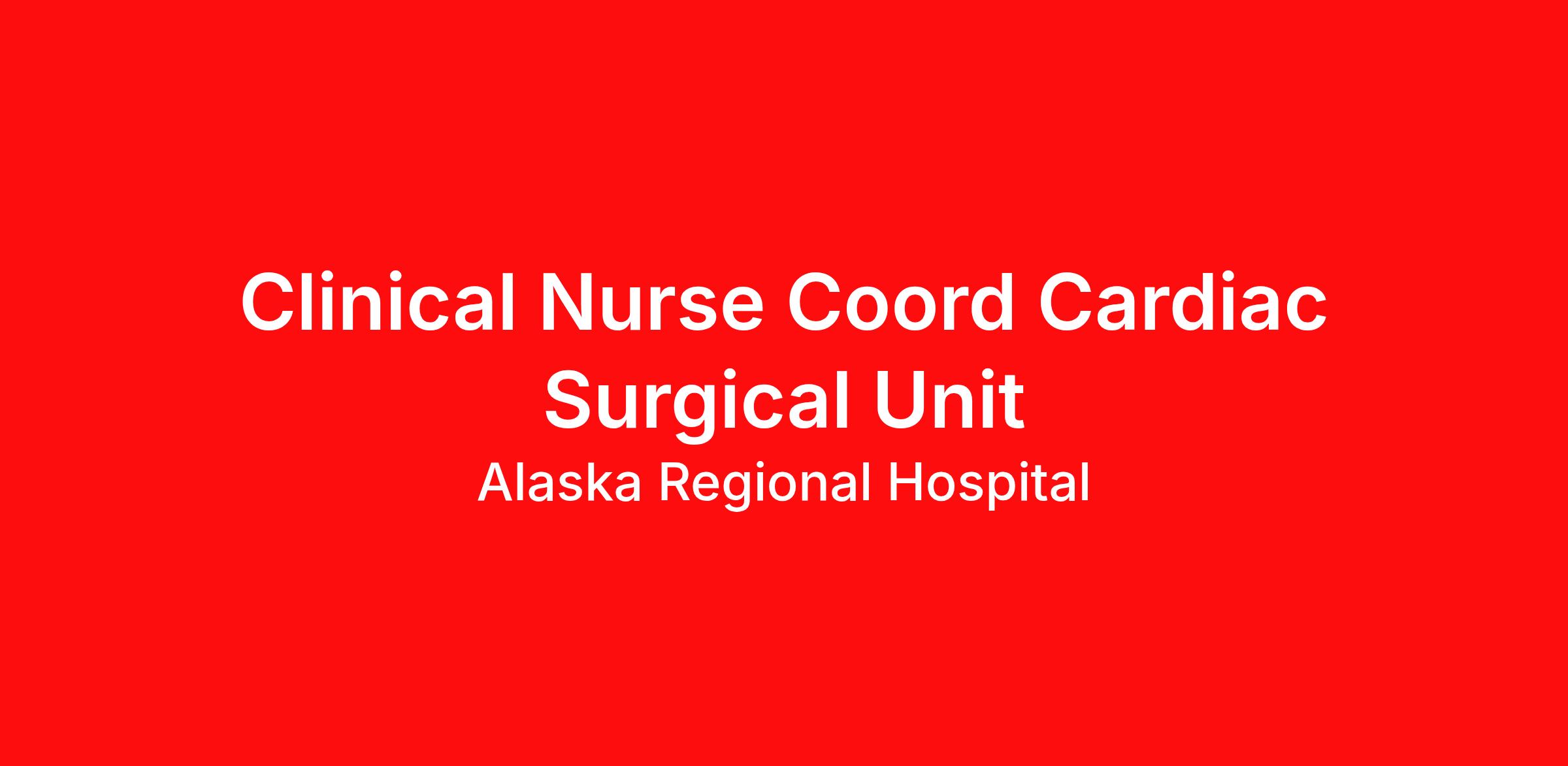 Strong Float Pool Support when it matters most. Technology and tools that streamline patient monitoring and communication to help you work more efficiently. Robust supply chains to keep you fully equipped. Ongoing clinical education to improve your skills. As a Registered Nurse at Alaska Regional Hospital, you’ll have all the staffing support, technology and resources you need to deliver safe, high-quality care—so you can focus on what you do best. Are you a continuous learner? With more than 94,000 nurses throughout HCA Healthcare, we are one of the largest employers of nurses in the United States. Education is key to excellence! As a majority owner of Galen College of Nursing, which joins Research College of Nursing and Mercy School of Nursing as educational facilities within the HCA Healthcare family, we make it easier and more affordable to gain certifications and job skills. Apply today for our Clinical Nurse Coord Cardiac Surgical Unit opening and continue to learn! Job Summary and Qualifications The Clinical Nurse Coordinator (CNC) delivers high quality, patient-centered care and coordinates all functions in the unit. In partnership with the management team, the CNC monitors and evaluates nursing care in accordance with established policies. The CNC serves as a resource for staff and supports an unparalleled patient experience. What you will do in this role: Partner with a multidisciplinary team to coordinate, evaluate, customize, and deliver high quality, patient-centered care. Assist with admission and discharge processes. Partner with subject matter experts and leadership team to support improved outcomes and service. Provide coaching, feedback, and training to improve performance and engagement. Assist with staff scheduling. What qualifications you will need: Advanced Cardiac Life Spt must be obtained within 90 days of employment start date Basic Cardiac Life Support must be obtained within 7 days of employment start date (RN) Registered Nurse Associate Degree Benefits Alaska Regional Hospital, offers a total rewards package that supports the health, life, career and retirement of our colleagues. The available plans and programs include: Comprehensive benefits for medical, prescription drug, dental, vision, behavioral health and telemedicine services Wellbeing support, including free counseling and referral services Time away from work programs for paid time off, paid family leave, long- and short-term disability coverage and leaves of absence Savings and retirement resources, including a 401(k) Plan with a 100% match on 3% to 9% of pay (based on years of service), Employee Stock Purchase Plan, flexible spending accounts, preferred banking partnerships, retirement readiness tools, rollover support and financial wellbeing counseling Education support through tuition assistance, student loan assistance, certification support, dependent scholarships and a partnership with Galen College of Nursing Additional benefits for fertility and family building, adoption assistance, life insurance, supplemental health protection plans, auto and home insurance, legal counseling, identity theft protection and consumer discounts Learn more about Employee Benefits Note: Eligibility for benefits may vary by location HCA Healthcare's Alaska Regional Hospital is known for our expertise, compassion and skills. We are committed to delivering patient-centered care to every patient on every visit for our 250 plus bed facility. Year after year, Alaska Regional receives 5-star ratings for heart attack treatment, bowel obstruction treatment, and colorectal surgery. Based in Anchorage, Alaska Regional is located in a thriving community offering plenty of opportunities to capitalize on the Alaskan lifestyle. Alaska offers some of the most incredible scenic beauty around the world which draws visitors year-round who come for a vacation and end up making Alaska home. We are part of the HCA Healthcare network - which includes more than 300 affiliate facilities across the country offering our colleagues the opportunity for travel and relocation. HCA Healthcare and Alaska Regional are inspired by our mission to care for and improve human life to create a positive impact in our community. HCA Healthcare has been recognized as one of the World’s Most Ethical Companies® by the Ethisphere Institute more than ten times. In recent years, HCA Healthcare spent an estimated $3.7 billion in cost for the delivery of charitable care, uninsured discounts, and other uncompensated expenses. If growth and continued learning is important to you, we encourage you to apply for our Clinical Nurse Coord Cardiac Surgical Unit opening. Our team will promptly review your application. Highly qualified candidates will be contacted for interviews. Unlock the possibilities apply today! We are an equal opportunity employer. We do not discriminate on the basis of race, religion, color, national origin, gender, sexual orientation, age, marital status, veteran status, or disability status.