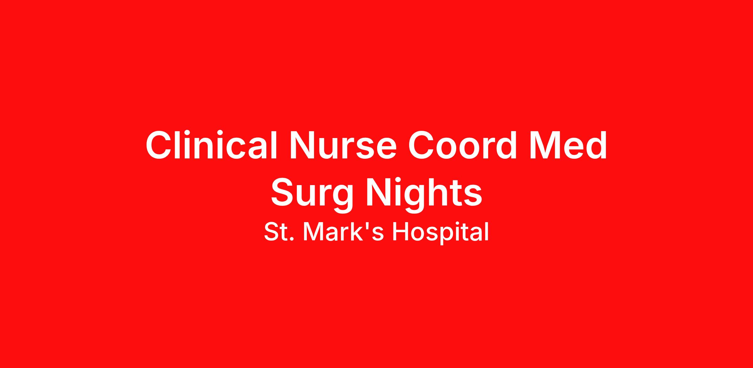 Introduction We are seeking a(an) Clinical Nurse Coord Comp Med Surg with St. Mark's Hospital to promote growth and unlock possibilities. At HCA Healthcare, we are committed to the care and improvement of human life. Share your leadership skills and come make a difference with us! Benefits St. Mark's Hospital, offers a total rewards package that supports the health, life, career and retirement of our colleagues. The available plans and programs include: Comprehensive medical coverage that covers many common services at no cost or for a low copay. Plans include prescription drug and behavioral health coverage as well as free telemedicine services and free AirMed medical transportation. Additional options for dental and vision benefits, life and disability coverage, flexible spending accounts, supplemental health protection plans (accident, critical illness, hospital indemnity), auto and home insurance, identity theft protection, legal counseling, long-term care coverage, moving assistance, pet insurance and more. Free counseling services and resources for emotional, physical and financial wellbeing 401(k) Plan with a 100% match on 3% to 9% of pay (based on years of service) Employee Stock Purchase Plan with 10% off HCA Healthcare stock Family support through fertility and family building benefits with Progyny and adoption assistance. Referral services for child, elder and pet care, home and auto repair, event planning and more Consumer discounts through Abenity and Consumer Discounts Retirement readiness, rollover assistance services and preferred banking partnerships Education assistance (tuition, student loan, certification support, dependent scholarships) Colleague recognition program Time Away From Work Program (paid time off, paid family leave, long- and short-term disability coverage and leaves of absence) Employee Health Assistance Fund that offers free employee-only coverage to full-time and part-time colleagues based on income. Learn more about Employee Benefits Note: Eligibility for benefits may vary by location. We are seeking a(an) Clinical Nurse Coord Comp Med Surg for our team to be an innovator. HCA Healthcare partners with Harvard Pilgrim Institute and the CDC to use our data from more than 26 million patient encounters each year to impact the industry. Come build your career with us! Job Summary and Qualifications The Clinical Nurse Coordinator (CNC) ensures and delivers high quality, patient-centered care and coordination of all functions in the unit/department during the designated shift. In collaboration with other members of the management team, the CNC directs, monitors, and evaluates nursing care in accordance with established policies/procedures, serves as a resource person for staff, and models a commitment to the organization’s vision/mission/values to support an unparalleled patient experience and clinical outcomes that contribute to overall departmental performance. In our unit: Our comprehensive Medical Surgical Unit is housed in the brand new tower. We work hand in hand with our progressive care unit. We have 34 beds and care for patients with a variety of conditions such as chemotherapy care, telemetry monitoring, advanced infections, etc. Many of our nurses have sought out certification through the Oncology Nursing Society. Great entry level into a career path moving to step down to ICU to CVICU and beyond. What you will do in this role: Assists with admission and discharge processes to ensure efficient throughput and high quality, patient-centered care. Participates in the ongoing assessment of the quality of patient care services provided in the unit, in collaboration with other members of the management team. Collaborates with subject matter experts and other managers to create an environment of teamwork that supports improved outcomes and service. Supports a patient-first philosophy and engages in service recovery when necessary. Supports the efforts of the facility to improve engagement by operationalizing current nursing strategies, including employee rounding, hourly rounds, and other initiatives. Provides recommendations related to interviewing, selecting, and training new staff. Recommends and implements courses of action, including training and development, conflict resolution, personnel policy compliance, completion of performance evaluations, and/or disciplinary actions to ensure a competitively better organization. Assists with staff scheduling. Manages all practical aspects of staff labor in accordance with patient care needs and established productivity guidelines. Supports proper inventory control and assists with managing supplies and equipment. What qualifications you will need: Advanced Cardiac Life Spt must be obtained within 90 days of employment start date (RN) Registered Nurse Basic Cardiac Life Support, or Associate Degree, or Bachelors Degree must be obtained within 30 days of employment start date One or more years of Medical Surgical experience required One or more years of demonstrated leadership experience required For 150 years, St. Mark's Hospital has provided a full-spectrum of healthcare services to Salt Lake City and its surrounding communities. As Utah's first hospital, St. Mark's team members uphold a rich tradition of patient-centered, top-quality care at our 308 plus bed hospital. St Mark's drives the development of some of the regions finest clinical service areas such as neurosciences, trauma, orthopedics, cardiac care and robotic surgery. St. Mark's was named to the Fortune/IBM Watson Health 100 Top Hospitals® list. This is the eighth time this hospital has been recognized with this honor as one of the top performing Teaching Hospitals in the U.S. St. Mark's has expanded emergency access to the communities we serve with two free standing emergency centers, Taylorsville Emergency Center and West Valley Emergency Center . Both locations have 10 plus patient rooms are staffed 24/7 by experienced board-certified emerg