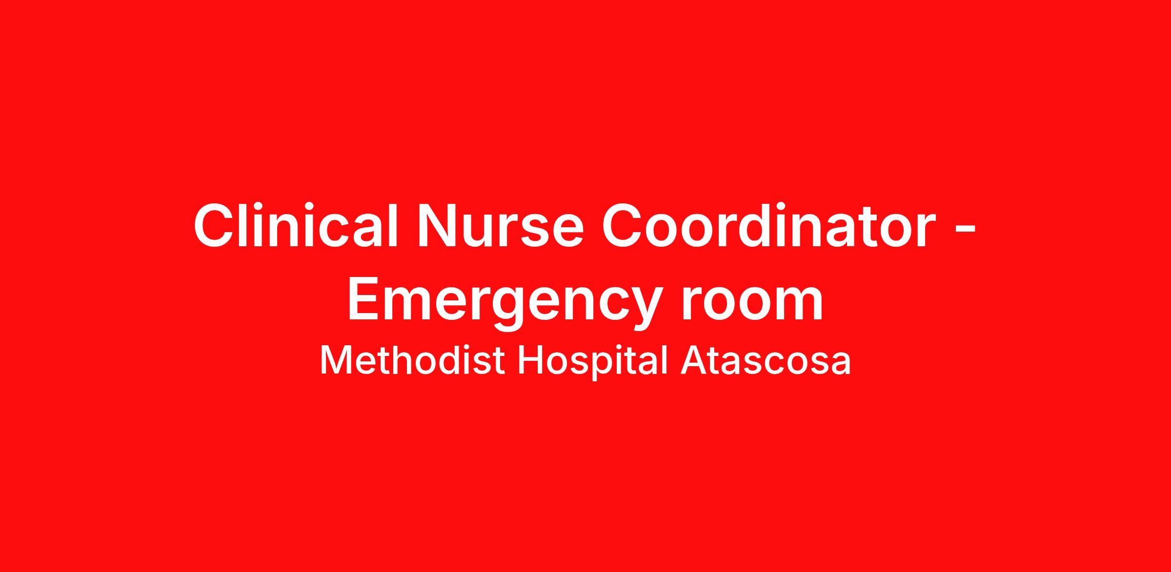 Introduction Do you want to be appreciated daily? Our nurses are celebrated for being on the front line, empathetic for patients. At Methodist Hospital Atascosa our nurses set us apart from any other healthcare provider. We are seeking a(an) Clinical Nurse Coordinator - Emergency room to join our healthcare family. Benefits Methodist Hospital Atascosa, offers a total rewards package that supports the health, life, career and retirement of our colleagues. The available plans and programs include: Comprehensive medical coverage that covers many common services at no cost or for a low copay. Plans include prescription drug and behavioral health coverage as well as free telemedicine services and free AirMed medical transportation. Additional options for dental and vision benefits, life and disability coverage, flexible spending accounts, supplemental health protection plans (accident, critical illness, hospital indemnity), auto and home insurance, identity theft protection, legal counseling, long-term care coverage, moving assistance, pet insurance and more. Free counseling services and resources for emotional, physical and financial wellbeing 401(k) Plan with a 100% match on 3% to 9% of pay (based on years of service) Employee Stock Purchase Plan with 10% off HCA Healthcare stock Family support through fertility and family building benefits with Progyny and adoption assistance. Referral services for child, elder and pet care, home and auto repair, event planning and more Consumer discounts through Abenity and Consumer Discounts Retirement readiness, rollover assistance services and preferred banking partnerships Education assistance (tuition, student loan, certification support, dependent scholarships) Colleague recognition program Time Away From Work Program (paid time off, paid family leave, long- and short-term disability coverage and leaves of absence) Employee Health Assistance Fund that offers free employee-only coverage to full-time and part-time colleagues based on income. Learn more about Employee Benefits Note: Eligibility for benefits may vary by location. At Methodist Hospital Atascosa, our nurses play a vital part. We know that every nurse’s path and purpose is unique. Do you want to create your own personal career path in nursing? HCA Healthcare is your career destination! Our scale makes it possible for nurses to create the career path that fits their life – for life – and empowers their passion for patient care. Apply today for our Clinical Nurse Coordinator - Emergency room opportunity. Job Summary and Qualifications The Clinical Nurse Coordinator (CNC) ensures and delivers high quality, patient-centered care and coordination of all functions in the unit/department during the designated shift. In collaboration with other members of the management team, the CNC directs, monitors, and evaluates nursing care in accordance with established policies/procedures, serves as a resource person for staff, and models a commitment to the organization’s vision/mission/values to support an unparalleled patient experience and clinical outcomes that contribute to overall departmental performance. What you will do in this role: Assists with admission and discharge processes to ensure efficient throughput and high quality, patient-centered care. Participates in the ongoing assessment of the quality of patient care services provided in the unit, in collaboration with other members of the management team. Collaborates with subject matter experts and other managers to create an environment of teamwork that supports improved outcomes and service. Supports a patient-first philosophy and engages in service recovery when necessary. Supports the efforts of the facility to improve engagement by operationalizing current nursing strategies, including employee rounding, hourly rounds, and other initiatives. Provides recommendations related to interviewing, selecting, and training new staff. Recommends and implements courses of action, including training and development, conflict resolution, personnel policy compliance, completion of performance evaluations, and/or disciplinary actions to ensure a competitively better organization. Assists with staff scheduling. Manages all practical aspects of staff labor in accordance with patient care needs and established productivity guidelines. Supports proper inventory control and assists with managing supplies and equipment. What qualifications you will need: Advanced Cardiac Life Spt must be obtained within 90 days of employment start date Basic Cardiac Life Support must be obtained within 30 days of employment start date Nonviolent Crisis Interv Inst must be obtained within 60 months of employment start date Trauma Nursing Core Course must be obtained within 60 months of employment start date Registered Nurse Emergency Nurse Pediatric Cour, or Registered Nurse Diploma, or Associate Degree, or Bachelors Degree must be obtained within 60 months of employment start date Methodist Hospital Atascosa is a comprehensive medical center located just south of San Antonio, Texas. The hospital offers a range of services. Services include emergency care, orthopedics, cardiology, sports medicine, and urology. Methodist Hospital Atascosa is part of Methodist Healthcare. We share 50-50 co-ownership between Methodist Healthcare Ministries of South Texas, Inc. and HCA Healthcare, the nation’s leading provider of healthcare services. Methodist Healthcare Ministries of South Texas, Inc. is South Texas’ largest non-public funding source of community health care for uninsured patients. This creates a unique partnership that benefits the community. We are able to provide quality care to all and charitable care when needed. "The great hospitals will always put the patient and the patient's family first, and the really great institutions will provide care with warmth, compassion, and dignity for the individual."- Dr. Thomas Frist, Sr. HCA Healthcare Co-Founder Join a family 