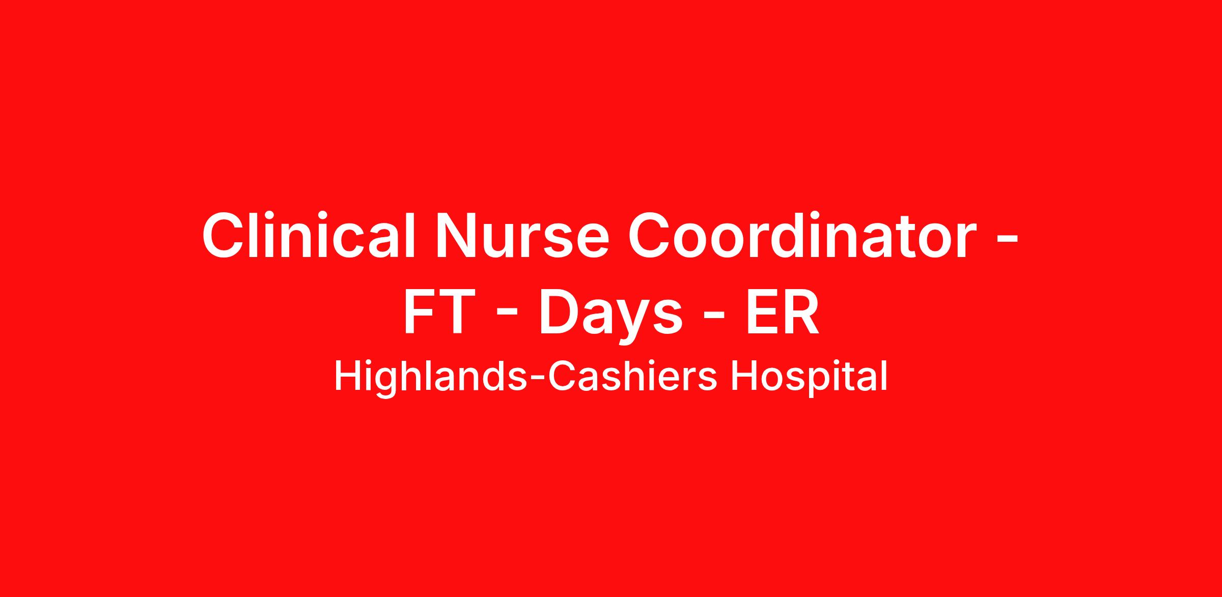 Ready for a role that supports your unique calling in patient care and fits your life? At Highlands-Cashiers Hospital, you’ll find clear pathways to advance backed by our unmatched nationwide transfer policy that lets you grow your career when the time is right for you. With mentorship opportunities, clinical education courses, professional certification support, and educational assistance, you will have all the resources you need to build the career of a lifetime. Job Summary and Qualifications The Clinical Nurse Coordinator (CNC) ensures and delivers high quality, patient-centered care and coordination of all functions in the unit/department during the designated shift. In collaboration with other members of the management team, the CNC directs, monitors, and evaluates nursing care in accordance with established policies/procedures, serves as a resource person for staff, and models a commitment to the organization’s vision/mission/values to support an unparalleled patient experience and clinical outcomes that contribute to overall departmental performance. What you will do in this role: Assists with admission and discharge processes to ensure efficient throughput and high quality, patient-centered care. Participates in the ongoing assessment of the quality of patient care services provided in the unit, in collaboration with other members of the management team. Collaborates with subject matter experts and other managers to create an environment of teamwork that supports improved outcomes and service. Supports a patient-first philosophy and engages in service recovery when necessary. Supports the efforts of the facility to improve engagement by operationalizing current nursing strategies, including employee rounding, hourly rounds, and other initiatives. Provides recommendations related to interviewing, selecting, and training new staff. Recommends and implements courses of action, including training and development, conflict resolution, personnel policy compliance, completion of performance evaluations, and/or disciplinary actions to ensure a competitively better organization. Assists with staff scheduling. Manages all practical aspects of staff labor in accordance with patient care needs and established productivity guidelines. Supports proper inventory control and assists with managing supplies and equipment. What qualifications you will need: Required Experience: 1 years applicable experience Required Education: Bachelor's Degree in Nursing Effective 6/24/2021 (NC Division): Bachelor of Science in Nursing or enroll in a BSN or advanced degree program and obtain a BSN within 5 years of hire date into RN position. Grandfathering will be accepted between departments and Mission Health entities. Exemptions, or extensions, may be approved by the facility CNO and reported out to the CNO Council members. Each facility will ensure tracking of exemptions should this information be needed. RNs with 10 years or more of experience are exempt. Required License: Currently licensed as a registered professional nurse in the state(s) of practice and/or has an active compact license, in accordance with law and regulation. Must have and maintain current licensure as registered nurse with the North Carolina Board of Nursing. eNLC (Enhanced Nurse Licensure Compact) license may apply, licensee should confirm with NCBON. Required Certification: Basic Life Support (BLS) Benefits Highlands-Cashiers Hospital, offers a total rewards package that supports the health, life, career and retirement of our colleagues. The available plans and programs include: Comprehensive benefits for medical, prescription drug, dental, vision, behavioral health and telemedicine services Wellbeing support, including free counseling and referral services Time away from work programs for paid time off, paid family leave, long- and short-term disability coverage and leaves of absence Savings and retirement resources, including a 401(k) Plan with a 100% match on 3% to 9% of pay (based on years of service), Employee Stock Purchase Plan, flexible spending accounts, preferred banking partnerships, retirement readiness tools, rollover support and financial wellbeing counseling Education support through tuition assistance, student loan assistance, certification support, dependent scholarships and a partnership with Galen College of Nursing Additional benefits for fertility and family building, adoption assistance, life insurance, supplemental health protection plans, auto and home insurance, legal counseling, identity theft protection and consumer discounts Learn more about Employee Benefits Note: Eligibility for benefits may vary by location. Highlands-Cashiers Hospital, a member of Mission Health, an operating division of HCA Healthcare, is a community hospital serving Macon, Jackson and the surrounding counties. Located on Highway 64 between the towns of Highlands and Cashiers, the hospital offers 24/7 emergency care, acute inpatient care, rehabilitation, as well as long-term care through Eckerd Living Center. Highlands-Cashiers Hospital has 24 beds for acute care services and 80 beds in the Eckerd Living Center. Ambulatory services are also available, including therapy services and primary care practices serving both Highlands and Cashiers. HCA Healthcare has been recognized as one of the World’s Most Ethical Companies® by the Ethisphere Institute more than ten times. In recent years, HCA Healthcare spent an estimated $3.7 billion in cost for the delivery of charitable care, uninsured discounts, and other uncompensated expenses. "Nurses play a pivotal role and are the backbone of healthcare delivery. At HCA Healthcare, we are dedicated to ensuring nurses have necessary tools and resources to provide world-class patient care, advocating for the profession and helping to shape the future of nursing." Sammie Mosier, DHA, MA, BSN, NE-BC Senior Vice President and Chief Nursing Executive, HCA Healthcare Join a family that cares about 