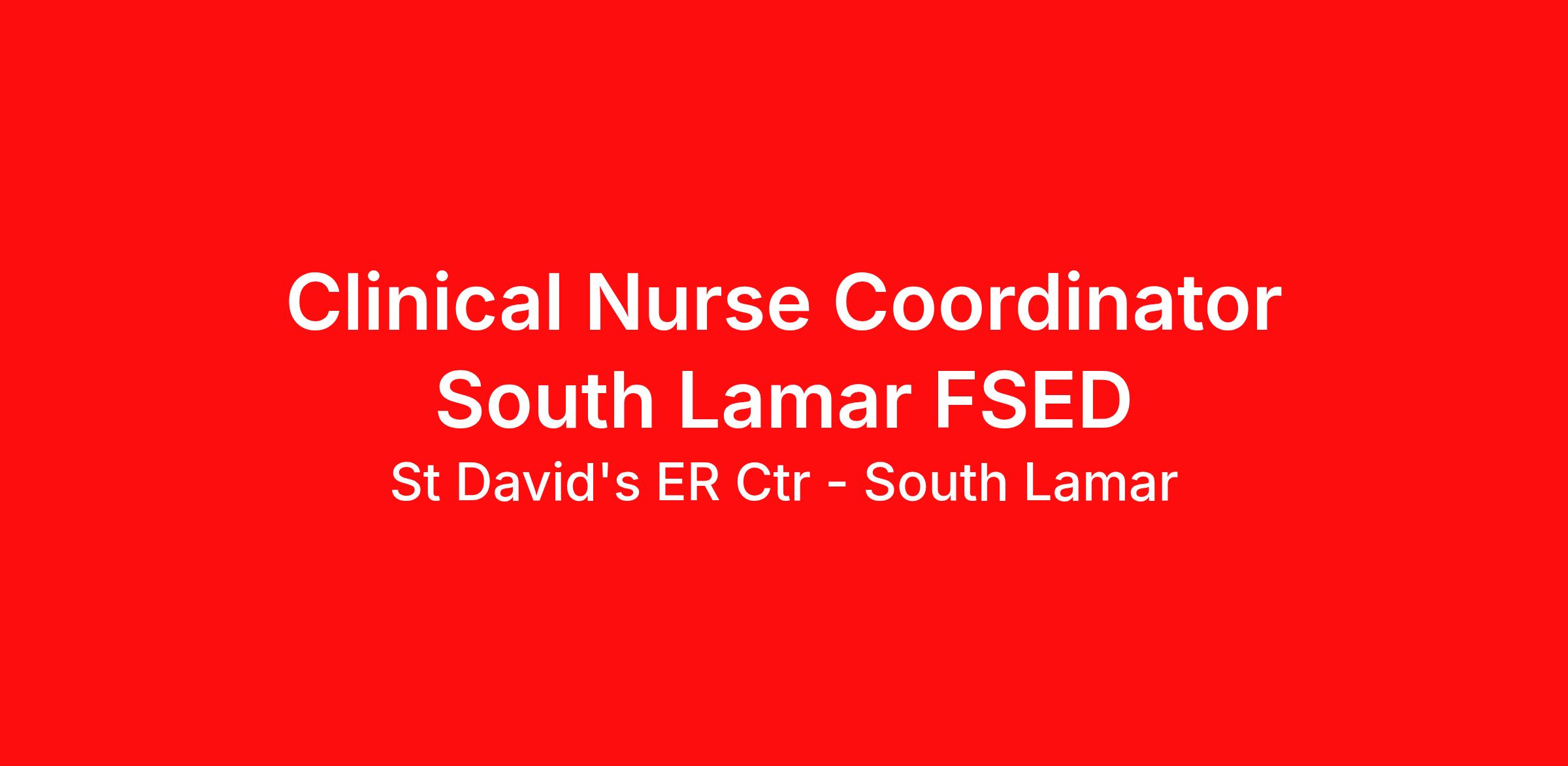 Strong staffing Support when it matters most. Technology and tools that streamline patient monitoring and communication to help you work more efficiently. Robust supply chains to keep you fully equipped. Ongoing clinical education to improve your skills. As a Registered Nurse at St David's ER Ctr - South Lamar, you’ll have all the staffing support, technology and resources you need to deliver safe, high-quality care—so you can focus on what you do best. Job Summary and Qualifications The Clinical Nurse Coordinator (CNC) ensures and delivers high quality, patient-centered care and coordination of all functions in the unit/department during the designated shift. In collaboration with other members of the management team, the CNC directs, monitors, and evaluates nursing care in accordance with established policies/procedures, serves as a resource person for staff, and models a commitment to the organization’s vision/mission/values to support an unparalleled patient experience and clinical outcomes that contribute to overall departmental performance. What you will do in this role: Assists with admission and discharge processes to ensure efficient throughput and high quality, patient-centered care. Participates in the ongoing assessment of the quality of patient care services provided in the unit, in collaboration with other members of the management team. Collaborates with subject matter experts and other managers to create an environment of teamwork that supports improved outcomes and service. Supports a patient-first philosophy and engages in service recovery when necessary. Supports the efforts of the facility to improve engagement by operationalizing current nursing strategies, including employee rounding, hourly rounds, and other initiatives. Provides recommendations related to interviewing, selecting, and training new staff. Recommends and implements courses of action, including training and development, conflict resolution, personnel policy compliance, completion of performance evaluations, and/or disciplinary actions to ensure a competitively better organization. Assists with staff scheduling. Manages all practical aspects of staff labor in accordance with patient care needs and established productivity guidelines. Supports proper inventory control and assists with managing supplies and equipment. What qualifications you will need: Advanced Cardiac Life Spt must be obtained within 6 months of employment start date Basic Cardiac Life Support must be obtained within 30 days of employment start date Emergency Nurse Pediatric Cour must be obtained within 18 months of employment start date NIH Stroke Scale must be obtained within 60 days of employment start date Trauma Nursing Core Course must be obtained within 18 months of employment start date (RN) Registered Nurse Associate Degree, or Bachelors Degree Benefits St David's ER Ctr - South Lamar, offers a total rewards package that supports the health, life, career and retirement of our colleagues. The available plans and programs include: Comprehensive benefits for medical, prescription drug, dental, vision, behavioral health and telemedicine services Wellbeing support, including free counseling and referral services Time away from work programs for paid time off, paid family leave, long- and short-term disability coverage and leaves of absence Savings and retirement resources, including a 401(k) Plan with a 100% match on 3% to 9% of pay (based on years of service), Employee Stock Purchase Plan, flexible spending accounts, preferred banking partnerships, retirement readiness tools, rollover support and financial wellbeing counseling Education support through tuition assistance, student loan assistance, certification support, dependent scholarships and a partnership with Galen College of Nursing Additional benefits for fertility and family building, adoption assistance, life insurance, supplemental health protection plans, auto and home insurance, legal counseling, identity theft protection and consumer discounts Learn more about Employee Benefits Note: Eligibility for benefits may vary by location St. David's South Austin Medical Center , is a 368‑bed acute care hospital within St. David’s HealthCare , offering comprehensive specialty and sub‑specialty services. Key programs include a nationally accredited oncology program featuring the region’s only adult Transplant and Cellular Therapy Program; a Level II trauma center; advanced cardiac, stroke, and orthopedic services; full‑service maternity and newborn care; and four community emergency centers in Bee Cave and Bastrop. The facility is affiliated with the Texas Institute for Robotic Surgery , providing advanced robotic capabilities for orthopedics, open heart and lung procedures, complex GI surgery, surgical oncology, general and colorectal surgery, and urology. It was also among the first hospitals in Central Texas to integrate CT imaging with robotics for early lung cancer detection. HCA Healthcare has been recognized as one of the World's Most Ethical Companies® by the Ethisphere Institute more than ten times. In recent years, HCA Healthcare spent an estimated $3.7 billion in cost for the delivery of charitable care, uninsured discounts, and other uncompensated expenses. "Nurses play a pivotal role and are the backbone of healthcare delivery. At HCA Healthcare, we are dedicated to ensuring nurses have necessary tools and resources to provide world-class patient care, advocating for the profession and helping to shape the future of nursing." Sammie Mosier, DHA, MA, BSN, NE-BC Senior Vice President and Chief Nursing Executive, HCA Healthcare If growth and continued learning is important to you, we encourage you to apply for our Clinical Nurse Coordinator South Lamar FSED opening. Our team will promptly review your application. Highly qualified candidates will be contacted for interviews. Unlock the possibilities apply today! We are an equal opportunity employer. We d