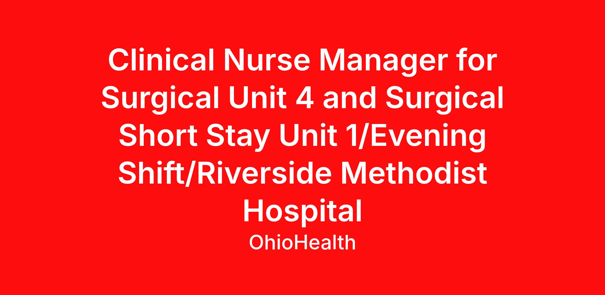 Clinical Nurse Manager for Surgical Unit 4 and Surgical Short Stay Unit 1/Evening Shift/Riverside Methodist Hospital