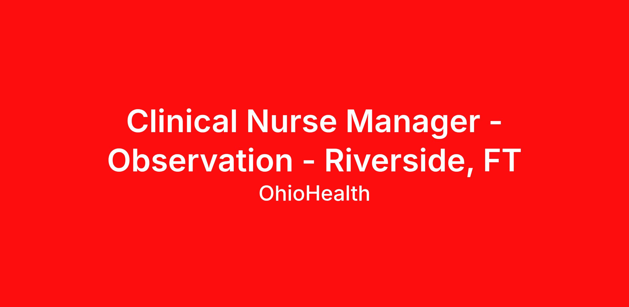 Clinical Nurse Manager - Observation - Riverside, FT