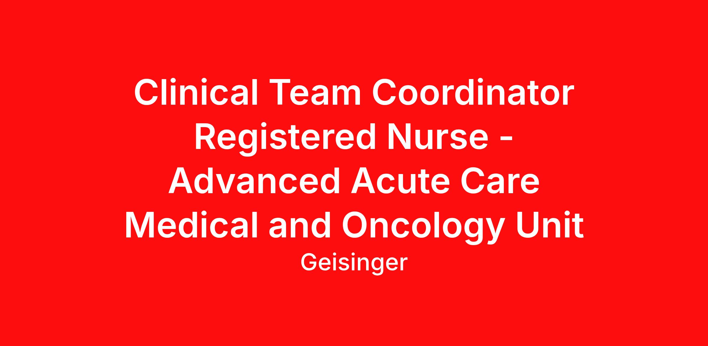 Clinical Team Coordinator Registered Nurse - Advanced Acute Care Medical and Oncology Unit