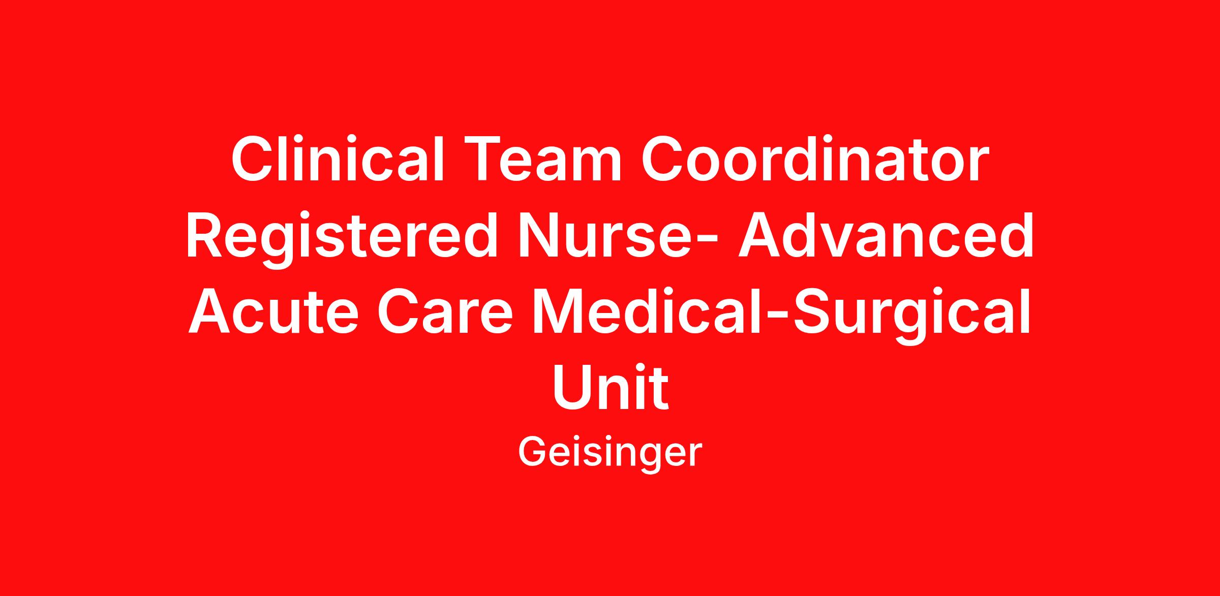 Clinical Team Coordinator Registered Nurse- Advanced Acute Care Medical-Surgical Unit