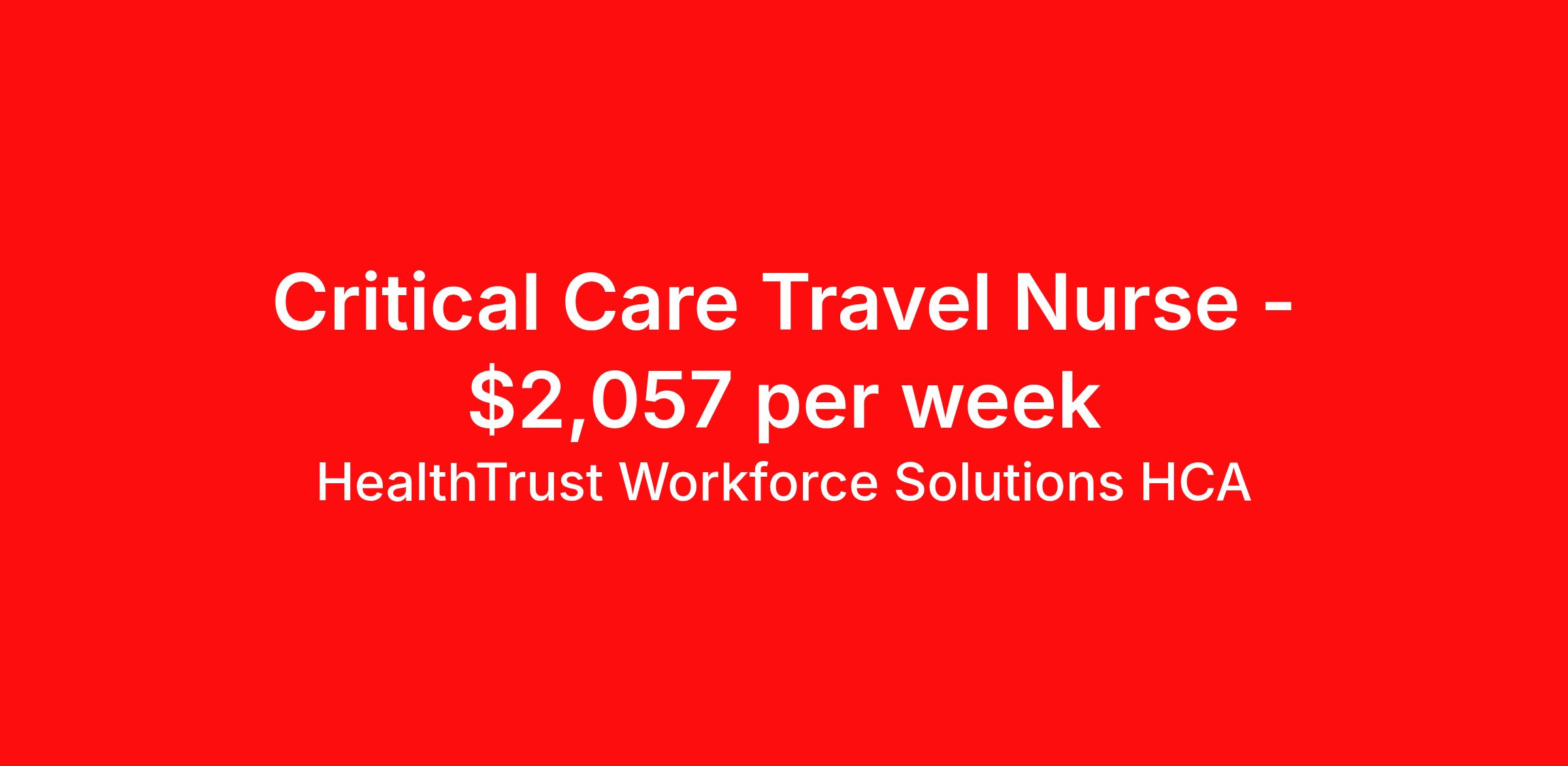 HealthTrust Workforce Solutions HCA is seeking a travel nurse RN ICU - Intensive Care Unit for a travel nursing job in Charleston, South Carolina. Job Description & Requirements Specialty: ICU - Intensive Care Unit Discipline: RN Duration: 13 weeks 36 hours per week Shift: 12 hours, nights Employment Type: Travel Entrust Your Career to HealthTrust! At HealthTrust, we believe that healthcare is not defined by the four walls in which it is practiced; it’s defined by its people. We pride ourselves on crafting opportunities that expand skill sets, broaden career horizons, provide economic stability, and cultivate personal growth. HealthTrust Offers: Competitive Pay Packages Guaranteed hours Weekly direct deposit options 401k with Company Match Earn up to $750 for referrals Free Private Furnished Housing or Tax-Free Subsidy To get started, you will need: RN's a minimum of 1 year in specialty Allied 6 months of experience An adventurous spirit and fierce dedication Degree in corresponding specialty as required Appropriate certifications and licensure as needed for the specific position HealthTrust Benefits: Opportunities for a lifetime: When you become a part of the HCA family, you will have exclusive access to more opportunities than any other healthcare system in the nation. At HWS, we help open the door to a lifetime of lasting career opportunities. A culture of care: Our clinicians have made HWS an industry leader for over 25 years. We are passionate about our mission that, above all else, we are committed to the care and improvement of human life. Career Development: As a wholly owned subsidiary of HCA Healthcare, HWS is a preferred partner to thousands of top-performing hospitals. We provide our healthcare professionals with first-priority access to more than 200,000 jobs nationwide. We are uniquely positioned to offer you exclusive and direct access to HCA Healthcare’s vast network of facilities. Let us open the door to nationwide opportunities that fit your lifestyle! We are an equal opportunity employer and value diversity at our company. We do not discriminate on the basis of race, religion, color, national origin, gender, sexual orientation, age, marital status, veteran status, or disability status. Job Requirements Certifications ACLS (Required) NIHSS (Required) BLS (Required) HealthTrust Workforce Solutions HCA Job ID 988705. Posted job title: Travel Nurse - Critical Care About HealthTrust Workforce Solutions HCA At HealthTrust Workforce Solutions, healthcare is not just about the four walls of a facility but about the people who provide and receive care. Our focus is on empowering healthcare professionals to deliver exceptional patient experiences by providing them with the necessary skills, tools, and support. We partner with healthcare facilities nationwide to ensure that the right professionals are in the right roles. We prioritize our clinicians by giving them a voice and access to opportunities to fulfill their mission of improving lives by providing quality patient care. We are committed to our core values of Trust, Innovation, Adaptability, Courage, and Accountability. We are dedicated to positively impacting the healthcare industry by providing first-priority access to more than 200,000 jobs nationwide to our healthcare professionals. Join us and be part of the HealthTrust family, where you can make a difference every day. We embrace our changing environment, and we maintain a culture that has a rich tradition of transforming itself to meet the challenges of the future. MISSION STATEMENT While putting great people in the right roles is essential, our mission is far greater. We want our clinicians to be part of the HealthTrust family, where healthcare professionals have a voice and are empowered with the right tools and opportunities to fulfill their personal mission of improving lives. Plus, as a preferred partner to thousands of top-performing hospitals, we provide our healthcare professionals with first-priority access to more than 200,000 jobs nationwide. Benefits Dental benefits Vision benefits Referral bonus Continuing Education Life insurance