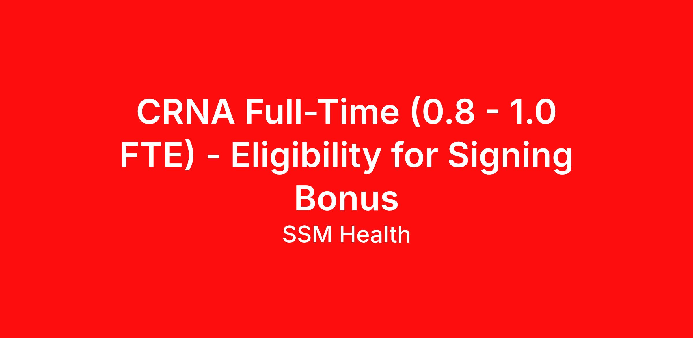 CRNA Full-Time (0.8 - 1.0 FTE) - Eligibility for Signing Bonus