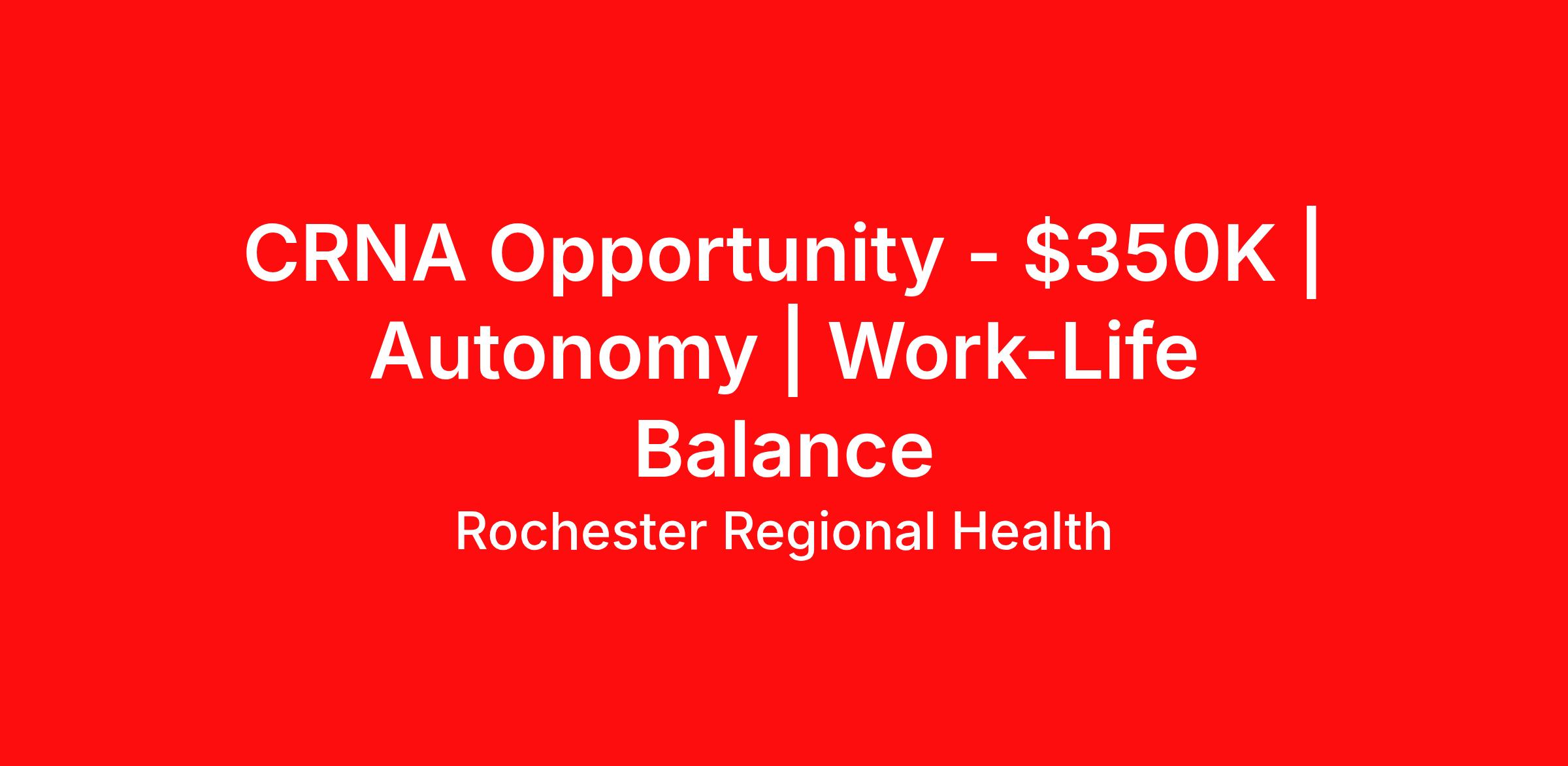 CRNA Opportunity – $350K | Autonomy | Work-Life Balance Canton-Potsdam Hospital | St. Lawrence Health | Northern NY Looking for more autonomy, diverse cases, and a balanced schedule? Join St. Lawrence Health , where CRNAs are valued for their expertise and given the independence to thrive. Why You’ll Love This Role: ? High Autonomy & Variety: Work within a care team and independent practice model. Cases range from OB, General Surgery, and Orthopedics to Regional Anesthesia and Trauma. ? Flexible Schedule: A mix of 24-hour shifts & 8-hour days (40-hour workweek). 1:9 call rotation with post-call days off. ? Strong Team Support: Work alongside 6 anesthesiologists, 9 full-time CRNAs, and 3 anesthesia techs in a collaborative environment. ? Competitive Compensation: $350K salary , $25K sign-on bonus, $7,500 relocation assistance, $2,000 CME, and 376 PTO hours annually! ? Full Benefits Package: Medical, dental, vision, life insurance, disability coverage, and more. About St. Lawrence Health As an affiliate of Rochester Regional Health , St. Lawrence Health is committed to top-tier patient care, offering trauma services, emergency medicine, and specialty care across Canton-Potsdam and Gouverneur Hospitals . Ready for a career that values your skills and work-life balance? Join us today! ?