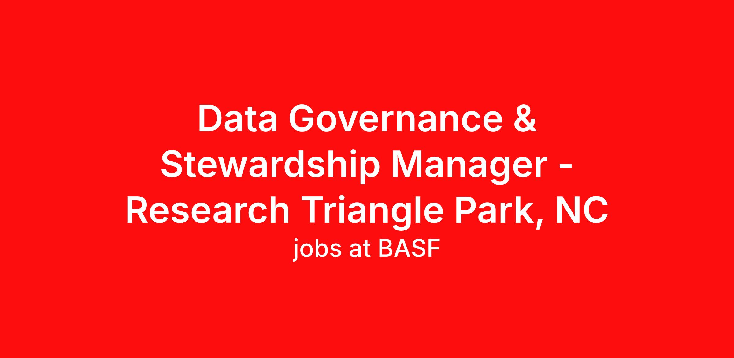 We are looking for a Data Governance & Stewardship Manager to join our Agricultural Solutions team in Research Triangle Park, NC.
