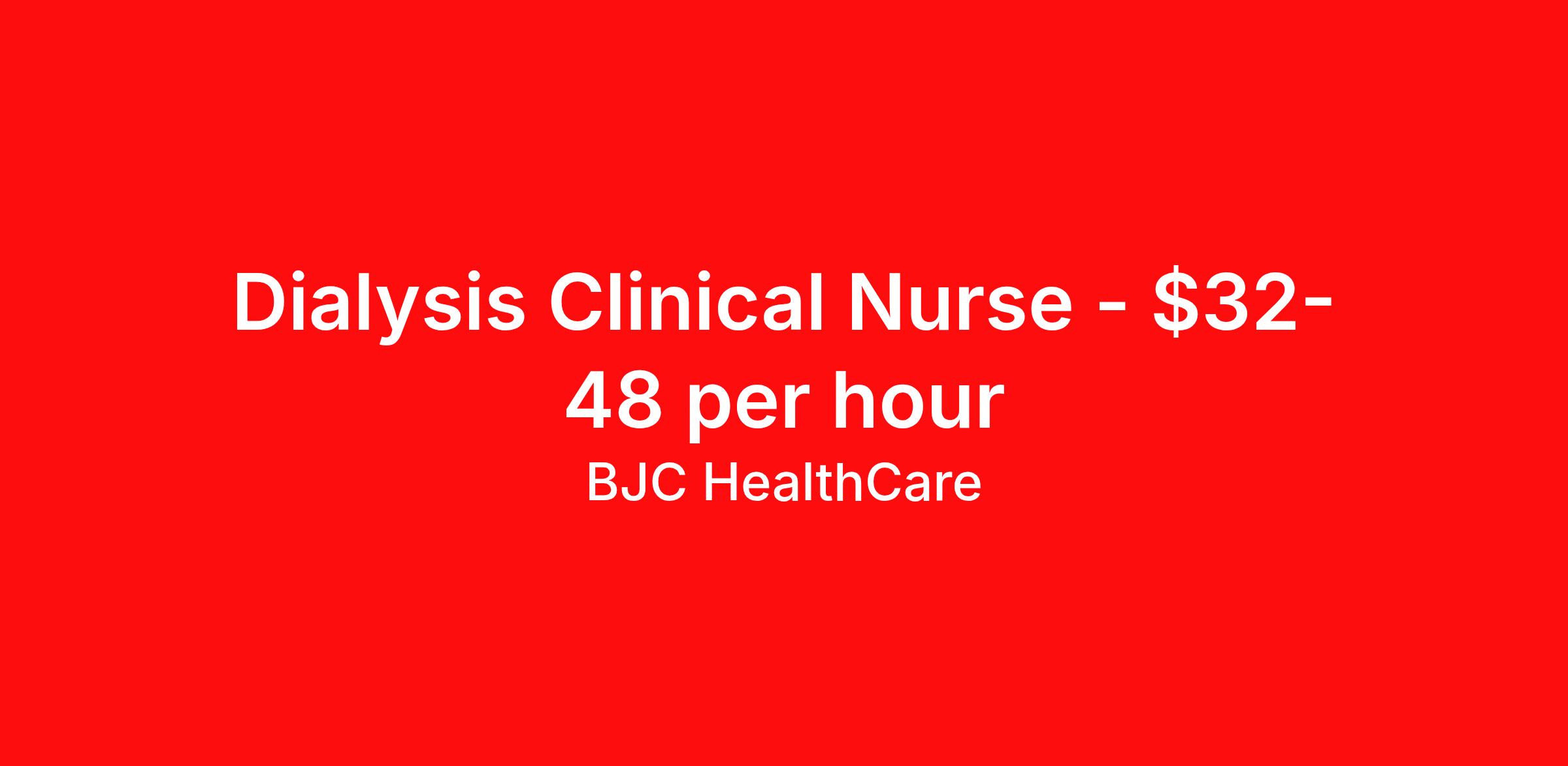 BJC HealthCare is seeking a Registered Nurse (RN) Dialysis for a nursing job in Saint Louis, Missouri. Job Description & Requirements Specialty: Dialysis Discipline: RN Duration: Ongoing Employment Type: Staff At Vivian Health, candidates with updated profiles have the best success. Make sure yours is complete so recruiters can match you to the perfect job! Additional Information About the Role Barnes-Jewish Hospital South Campus on 14300 RENAL Inpatient Acute Dialysis 13-Beds Considering applicants with a minimum two-years hospital-based bedside RN work experience STRAIGHT NIGHT (7pm-7am) Weekend requirement works every third Saturday (12-hour shift) On-Call every sixth Sunday for 12 hours PTO Accrual begins day-one Eligible for Tuition Assistance day-one May be eligible for sign-on bonus The BJC Registered Nurse Career Ladder differentiates BJC as the place for nurses to work in the greater St. Louis area. This is a tool to empower nurses to work at the top of their license and own their career progression. The BJC RN Career Ladder promotes professional development, leadership, collaboration, education and service excellence and gives staff the opportunity to continue doing what they do best - caring for patients - while having the opportunity to advance to the next step in their career. Moves to higher ladder levels will result in a percentage increase of current pay that aligns with the new job description. Overview Barnes-Jewish Hospital at Washington University Medical Center is the largest hospital in Missouri and is ranked as one of the nation's top hospitals by U.S. News & World Report. Barnes-Jewish Hospital's staff is composed of full-time academic faculty and community physicians of Washington University School of Medicine, supported by a house staff of residents, interns, fellows and other medical professionals. Recognizing its excellence in nursing care, Barnes-Jewish Hospital was the first adult hospital in Missouri to be certified as a Magnet Hospital by the American Nurses Credentialing Center. The Acute Dialysis Unit at Barnes-Jewish Hospital provides the latest treatments and technologies in renal replacement therapy to help patients with renal failure. The acute dialysis department has 12 dialysis bays to dialyze patients in the unit, and portable dialysis machines that enable dialysis RNs to travel throughout the hospital and provide dialysis therapy at patients' bedside, if needed. The types of renal replacement therapy we provide are: hemodialysis, CVVHDF, CVVHD, SCUF, SSED, TPE, CCPD, and CAPD. Department hours of operation are Monday through Saturday, 24 hours per day.¿ On Sundays the department RNs rotate on-call obligations. Preferred Qualifications Role Purpose Provides direct patient care activities including assessment, diagnosis, planning implementation, and evaluation within the guidelines of the standards of nursing care. Responsibilities Promotes patient and family centered care in a healing environment. Educates patients and their families on how to manage their illness or injury, including post treatment home care needs and medication administration. Participates in activities that promote patient safety, quality and regulatory compliance. Participates in professional development. Develops, implements, and documents individual plans of care with defined goals in collaboration with other members of the interprofessional team and patient, family or caregiver in accordance with the established guidelines and standards of nursing care. Proactively plans and ensures communication of the plan of care across the continuum of care. Uses critical nursing skills to assess and evaluate physical, psychosocial, and emotional needs according to standards of care. Assess patient preferences and barriers to involvement in care, including their values, emotional, spiritual, cultural, and population-specific needs. BJC has determined this is a safety-sensitive position. The ability to work in a constant state of alertness and in a safe manner is an essential function of this job. Minimum Requirements Education Nursing Diploma/Associate's - Nursing Experience No Experience Supervisor Experience No Experience Licenses & Certifications RN Preferred Requirements Education Bachelor's Degree - Nursing Experience Benefits and Legal Statement BJC Total Rewards At BJC we’re committed to providing you and your family with benefits and resources to help you manage your physical, emotional, social and financial well-being. Comprehensive medical, dental, vison, life insurance, and legal services available first day of the month after hire date Disability insurance* paid for by BJC Annual 4% BJC Automatic Retirement Contribution 401(k) plan with BJC match Tuition Assistance available on first day BJC Institute for Learning and Development Health Care and Dependent Care Flexible Spending Accounts Paid Time Off benefit combines vacation, sick days, holidays and personal time Adoption assistance To learn more, go to our Benefits Summary. *Not all benefits apply to all jobs The above information on this description has been designed to indicate the general nature and level of work performed by employees in this position. It is not designed to contain or be interpreted as an exhaustive list of all responsibilities, duties and qualifications required of employees assigned to this job. Equal Opportunity Employer BJC HealthCare Job ID 104220. Posted job title: Dialysis Nurse - Full Time Nights About BJC HealthCare BJC HealthCare is one of the largest nonprofit health care organizations in the United States, delivering services to residents primarily in the greater St. Louis, southern Illinois and southeast Missouri regions. With net revenues of $6.3 billion and more than 30,000 employees, BJC serves patients and their families in urban, suburban and rural communities through its 14 hospitals and multiple community health locations. Services include inpatient and outpatient care, primary c