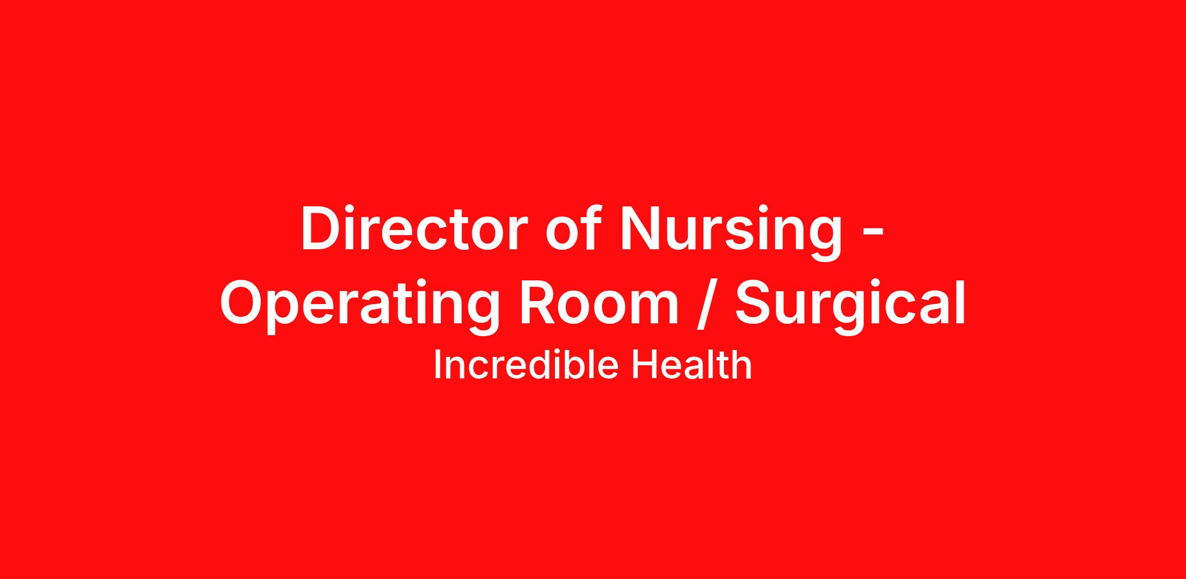 Hospitals on Incredible Health are actively hiring and accepting applications in the Bartlett, TN area for the following position: Director of Nursing - Operating Room / Surgical. Nurses with experience in any of the following areas are strongly encouraged to apply: Assistant Nurse Manager, CNO, CVOR, Charge, Circulate, Clinical Nurse Coordinator, Director, Manager, Neuro, On-call required, Open heart, Ortho, PACU experience, Pediatric, RNFA, Robotic surgery, Scrub, Supervisor, Transplant, VP, or Vascular. Shift(s) available: day shift, night shift, and mid shift Job types available: full time, part time, and per diem Employer features: 401(K), Cross training, Life Insurance, Medical, Offers sign on bonus, PTO Qualifications: RN Diploma degree or higher from an accredited school of nursing Active and unencumbered Registered Nurse license in the state of Tennessee Benefits: Healthcare coverage: Medical, Dental, Vision 401K Paid Time Off Tuition Assistance Salary: $48,920 to $94,690 /year