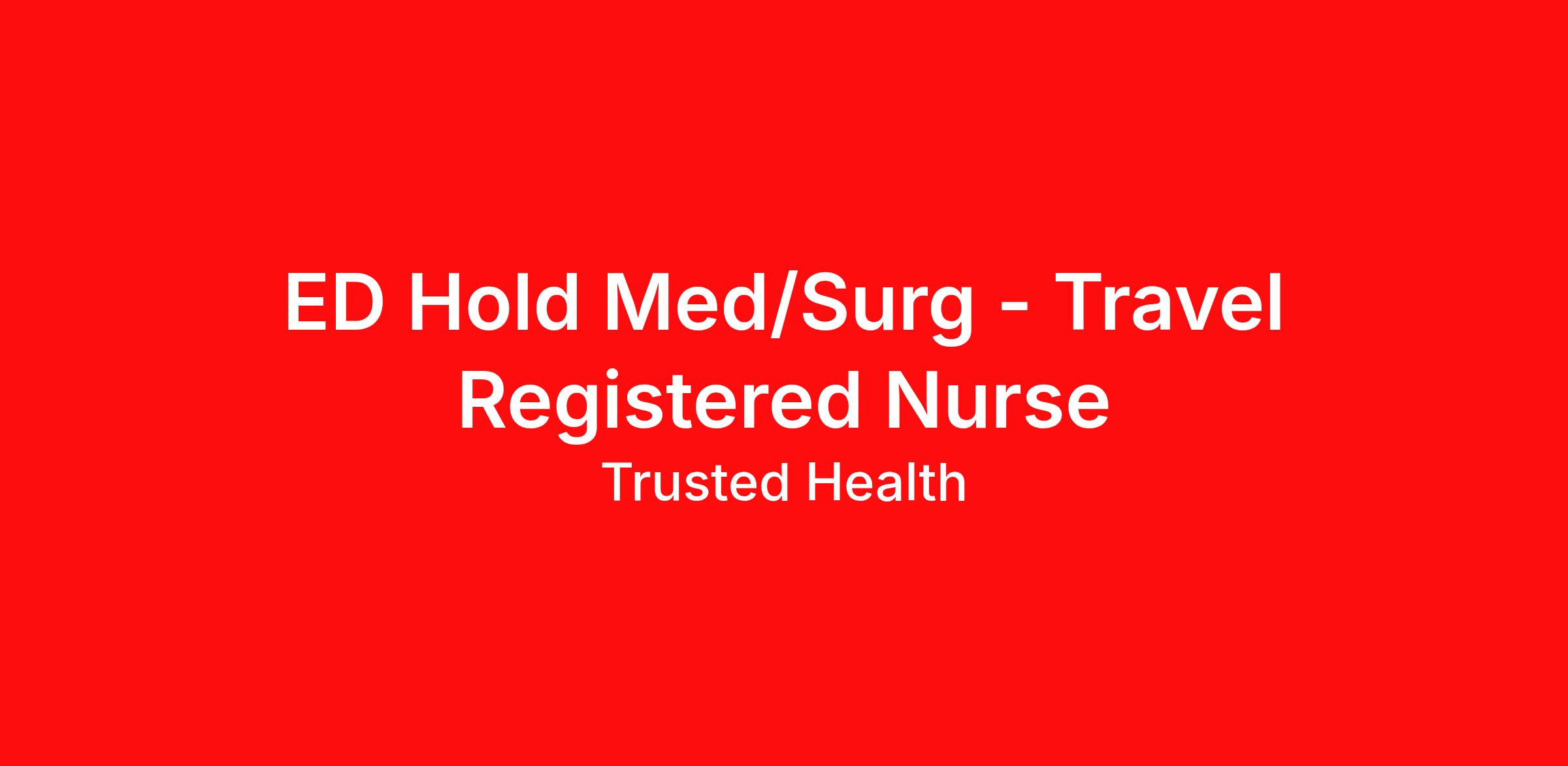Trusted is seeking an experienced nurse for this exciting travel nursing assignment. Trusted has streamlined the travel nursing experience by enabling nurses to apply directly to jobs without the need for recruiters. This unique approach provides more transparency, eliminates pesky calls from recruiters, and puts more money in your pocket. Join the thousands of nurses across the country who have already made the switch to a more modern way to work. Experience: • 12 months of role experience is required with some in the last 12 months. • Must have at least 18 months of Medical Surgical Unit experience. • Experience with Cerner is preferred from any number of months. • Experience with Epic is preferred from any number of months. • Trauma Level 2 experience is required from any number of months Requirements: • Candidates must have a Alabama license or compact license (required for submission). • This role will require floating to multiple units • Travel only, local not allowed. Candidates must live >60 miles from facility to be submitted. • Flu vaccination required for submission. Religious and medical declinations accepted. • 6 months gap required between for Staff at Program: SimpliFi Program - Baptist Health UAB and no current placement allowed at Program: SimpliFi Program - Baptist Health UAB. Pre-employment modules may be required for this role. Please upload any certifications or health documents you have to your profile to expedite your on-boarding process. Additional Details: ED Hold Med/Surg Required Skills/Experience: Will accept a traveler with 1-year experience Will accept a first-time traveler with at least 2 years’ experience Preferred Skills/Experience: ED experience Unit/Facility Details: Parking: Free, behind UAB building Shift & Scheduling: Weekend rotation: Every other or 4 weekend days per month if on block schedule Holiday Expectations: One major and one minor seasonal holiday per policy Floating Requirements: MS-MS, MS-ICU task, MS-ER/MS holds; ICU-ICU, ICU-MS task or limit of 3, ICU-ER/ICU holds You can only have 1 active application for the same position (same unit & shift at the same facility). Example: if you apply for day shift, you can also apply for night shift on the same unit and facility, but you cannot apply for another day shift position on the same unit & facility. 10 days maximum time off. Facility holidays: 03/26/2026, 04/03/2026, 04/04/2026, 04/05/2026, 05/25/2026, 05/31/2026, 07/03/2026, 07/04/2026, 09/07/2026, 11/25/2026, 11/26/2026, 11/27/2026, 12/24/2026, 12/25/2026, 12/26/2026, 12/31/2026, 01/01/2027, 01/18/2027, 02/09/2027, 02/09/2027, 02/21/2027. Number of holidays allowed off: 0 2 references from last 12 months (Any reference type) - required for submission Certifications: • BLS (Basic Life Support) • NIHSS (NIH Stroke Scale) • CPI (Crisis Prevention Institute) • ACLS (Advanced Cardiovascular Life Support) Skills Checklist: Yes References: Yes License Type: registered License State: AL Certifications: Advanced Cardiovascular Life Support, Crisis Prevention Institute, Basic Life Support, NIH Stroke Scale Job Details Job Type: Travel Nurse/Patient: 1/5 Shift Type: Night Contract Date: 2026-02-02 Expected Length: 13 weeks Hours per Shift: 12 Shifts per Week: 3