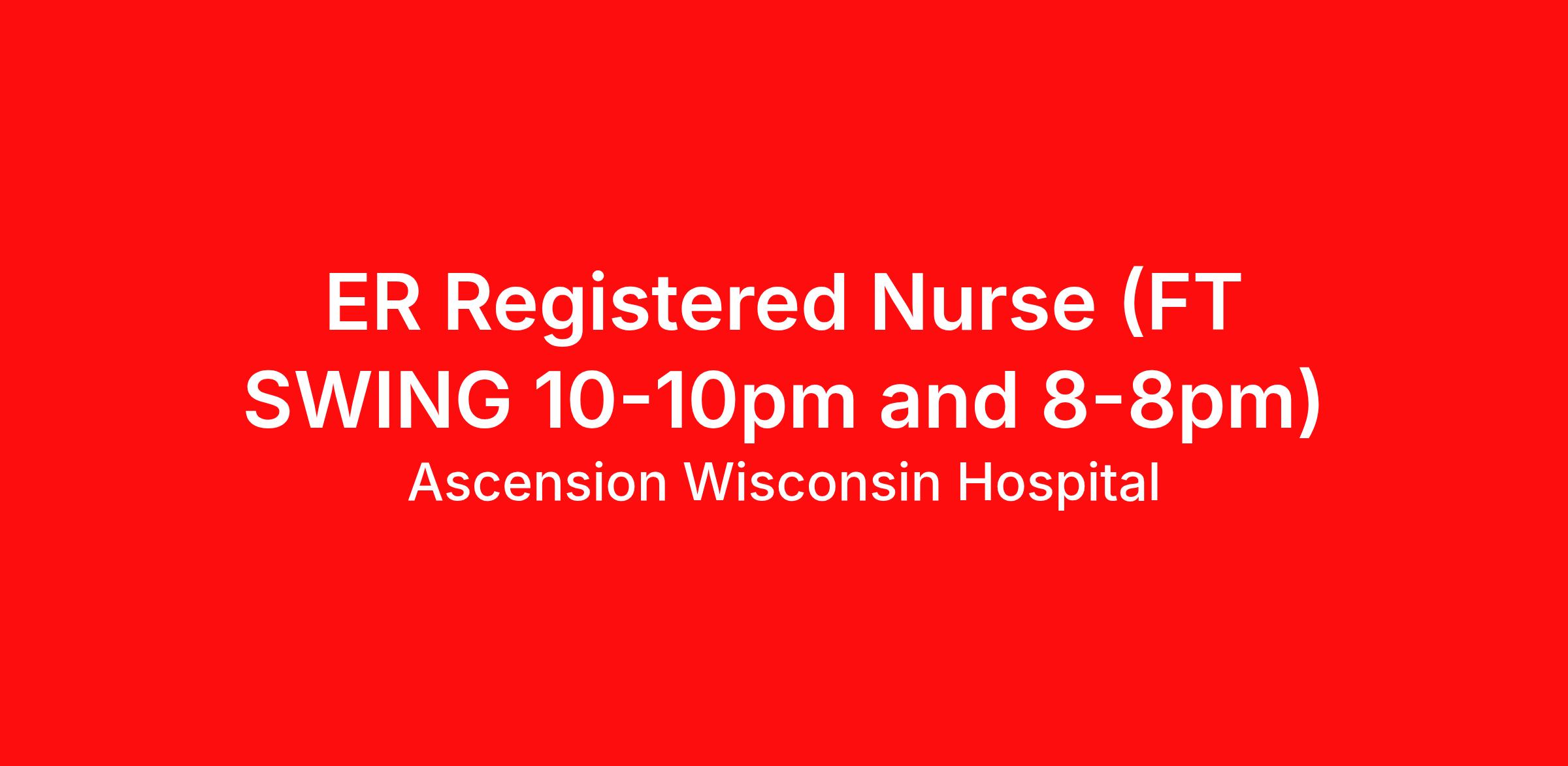 ER Registered Nurse (FT SWING 10-10pm and 8-8pm)