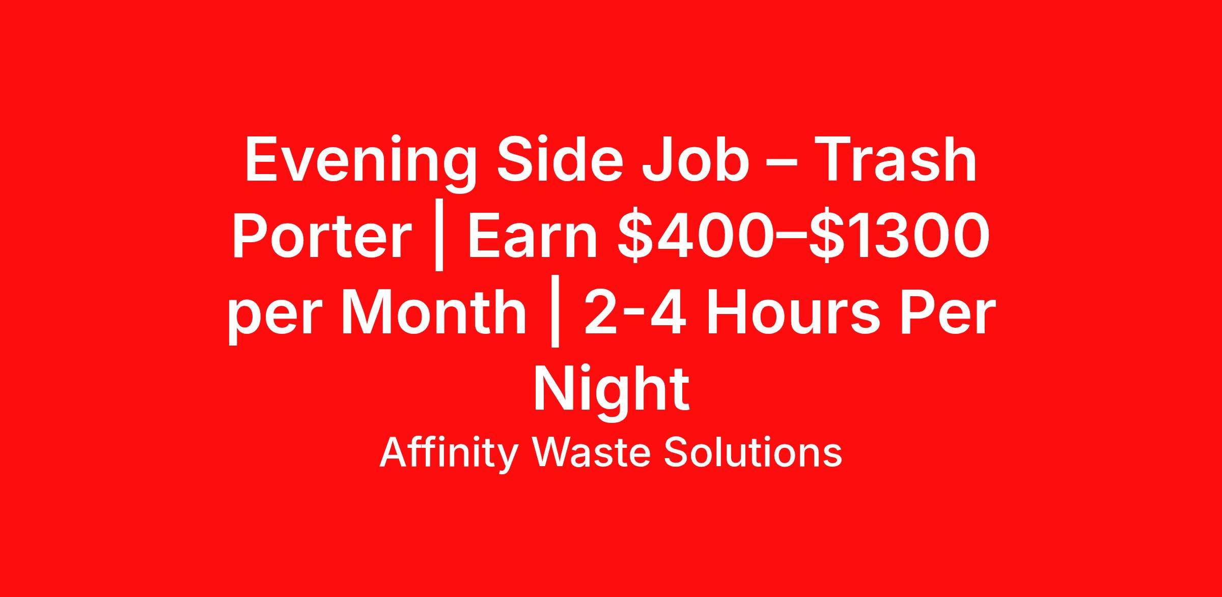 Looking for a reliable way to earn extra income in the evenings? We are hiring Part-Time Evening Trash Porters to service communities in the Charlotte area.