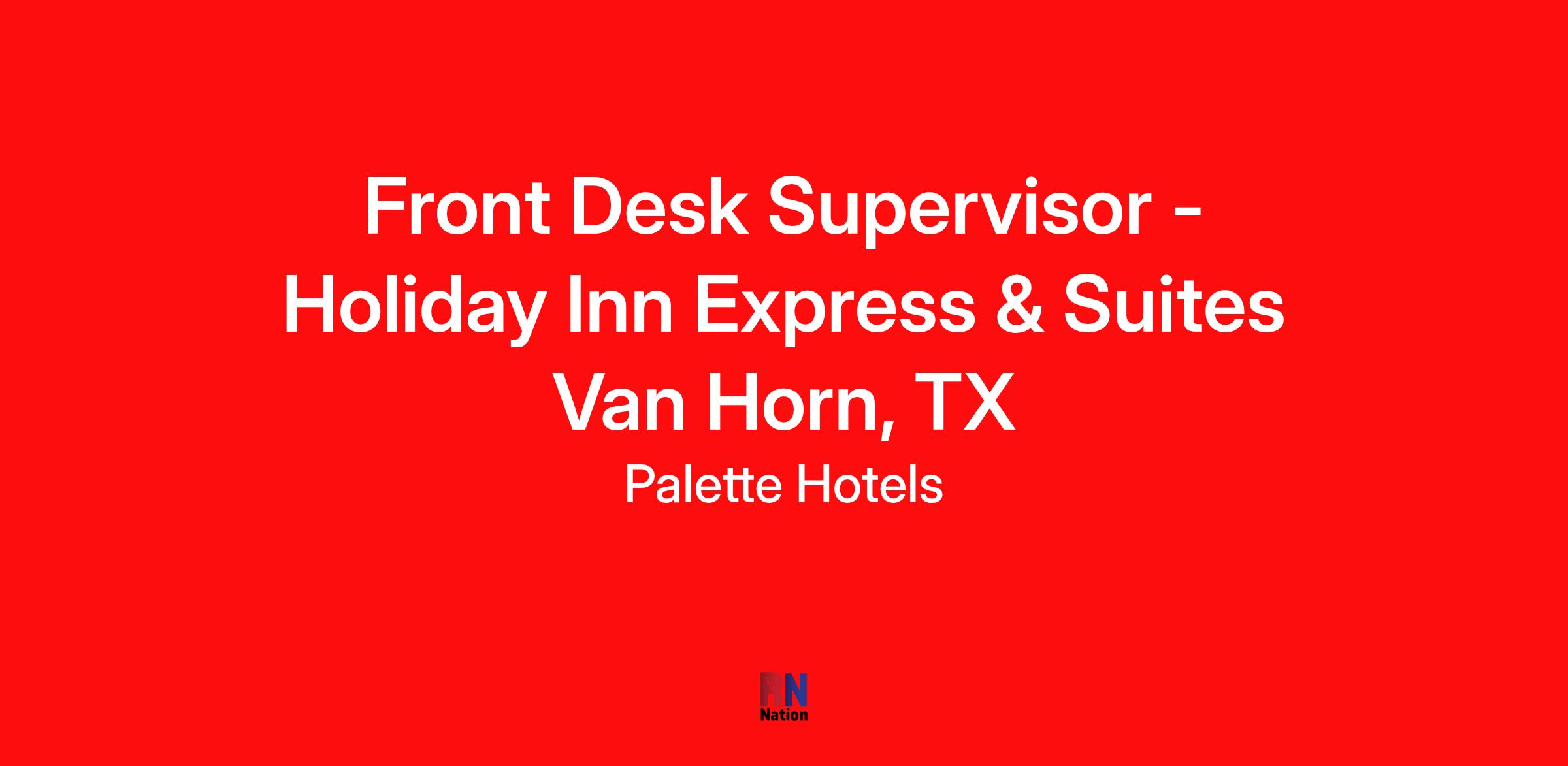 Position: Front Desk Supervisor - Holiday Inn Express & Suites Van Horn, TX