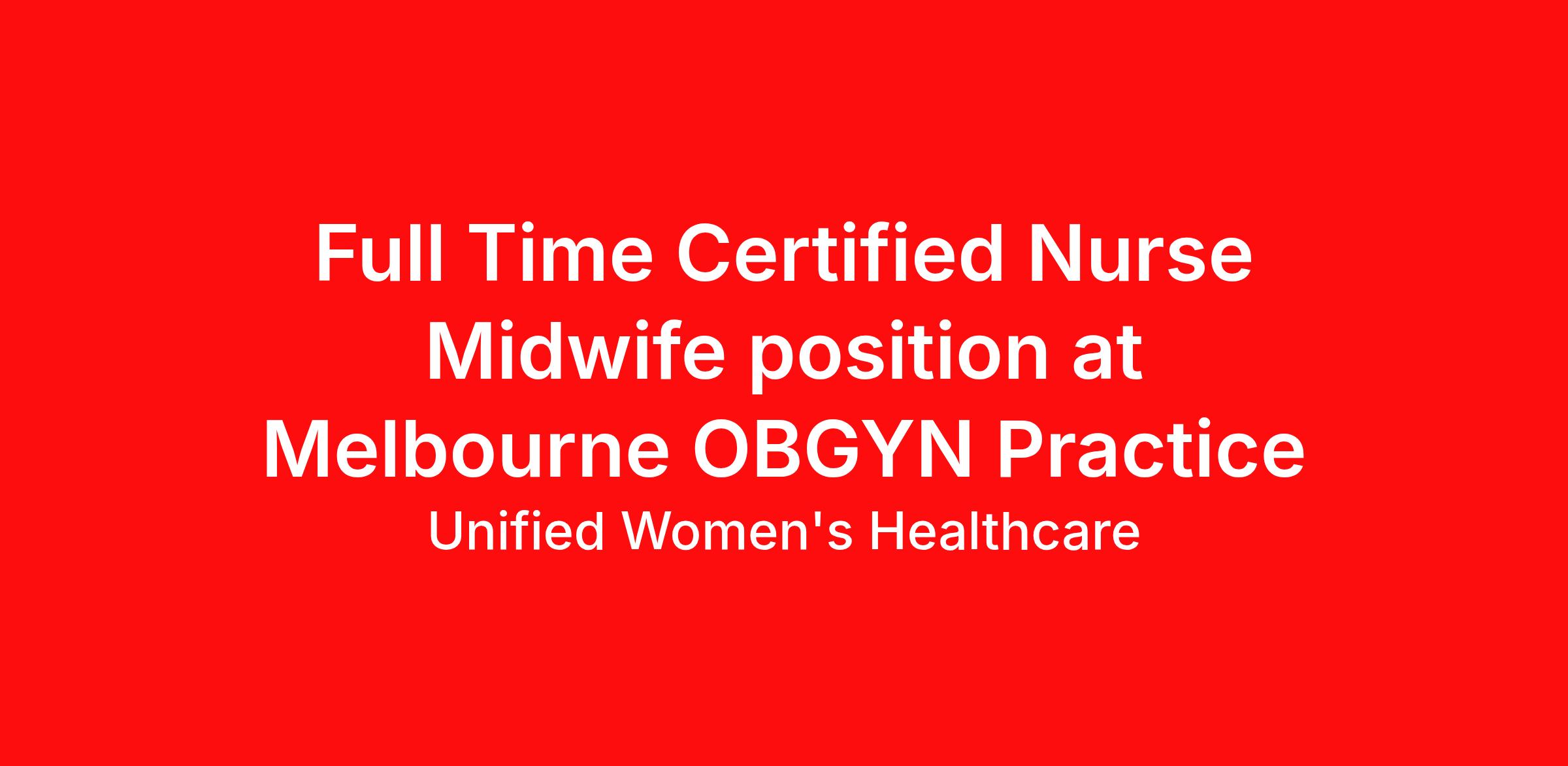 Full Time Certified Nurse Midwife position at Melbourne OBGYN Practice