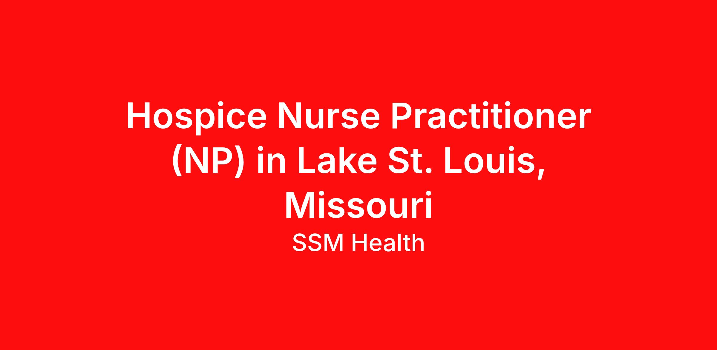 SSM Health is an Equal Opportunity Employer: Community Description: About SSM Health: Provide Comfort to Patients at SSM Health St. Joseph Hospital - Lake St. Louis At SSM Health , we are committed to delivering exceptional healthcare services. Our inpatient hospice team at SSM Health St. Joseph's Hospital - Lake St. Louis is growing and we are adding a full-time Hospice Nurse Practitioner! New grads with prior background in hospice or palliative care are welcome to apply. Job Details: Inpatient - will take consults and work on various floors Enjoy flexibility within your schedule! Position will include evening hours - start time is flexible Monday-Friday No overnights, weekends or after-hours call! Practice autonomously at the top of your license Onsite and virtual support available Comprehensive Financial Package - inquire for details: Experience-based hourly rate Evening/night differentials available Robust benefits package Health insurance within your first 30 days! Retirement plan employer match, CME, PTO more Your Qualifications: Ability to work independently Flexible team player Experience within hospice or palliative care is highly preferred Graduate of nationally accredited Nurse Practitioner (NP) Program Ability to obtain MO Licensure DEA SSM Health's healing legacy originated in St. Louis, Missouri over 150 years ago where five nuns, known as the Sisters of St. Mary's, were called to aid and heal in God's name. Since those humble beginnings, SSM Health has grown to become one of the largest Catholic not-for-profit integrated health systems serving the Midwest. Today, our healing ministry includes over 15,000 providers and approximately 40,000 team members, all working together with a shared Mission to deliver exceptional healthcare services that reveal the healing presence of God across Missouri, Oklahoma, Illinois, and Wisconsin. With 23 hospitals, 9 post-acute care centers, and over 490 physician offices and specialty care clinics spread across four states, SSM Health offers a world of opportunities where clinicians can do a world of good. Whether you're seeking to heal, teach, learn, lead, connect, or discover, there's a place within SSM Health for you to thrive. Wentzville is one of the fastest-growing cities in the state, blending modern development and new businesses with a rich history and a strong sense of community. It offers excellent schools, numerous parks, and family-friendly events. Residents can enjoy a variety of recreational options, such as the 250-acre Quail Ridge Park, which features a fishing lake, trails, and an off-leash dog park. The city also offers a variety of restaurants, shops, and entertainment options, catering to different interests. Additionally, Wentzville's proximity to St. Louis provides convenient access to urban amenities while maintaining a peaceful, small-town atmosphere. SSM Health is committed to equal employment opportunity based on race, color, religion, national origin, gender, sexual orientation, gender identity, pregnancy, age, physical or mental disability, veteran status, and all other statuses protected by law. To view all of our current provider career opportunities, visit joinssmhealth.com. For the clinicians at SSM Health, being here means being part of a heartful heritage of healing. It?s an opportunity to further a caring legacy while advancing medicine with an esteemed organization that encourages collaboration, empowers innovation, supports growth, and seeks to elevate care for everyone we serve.