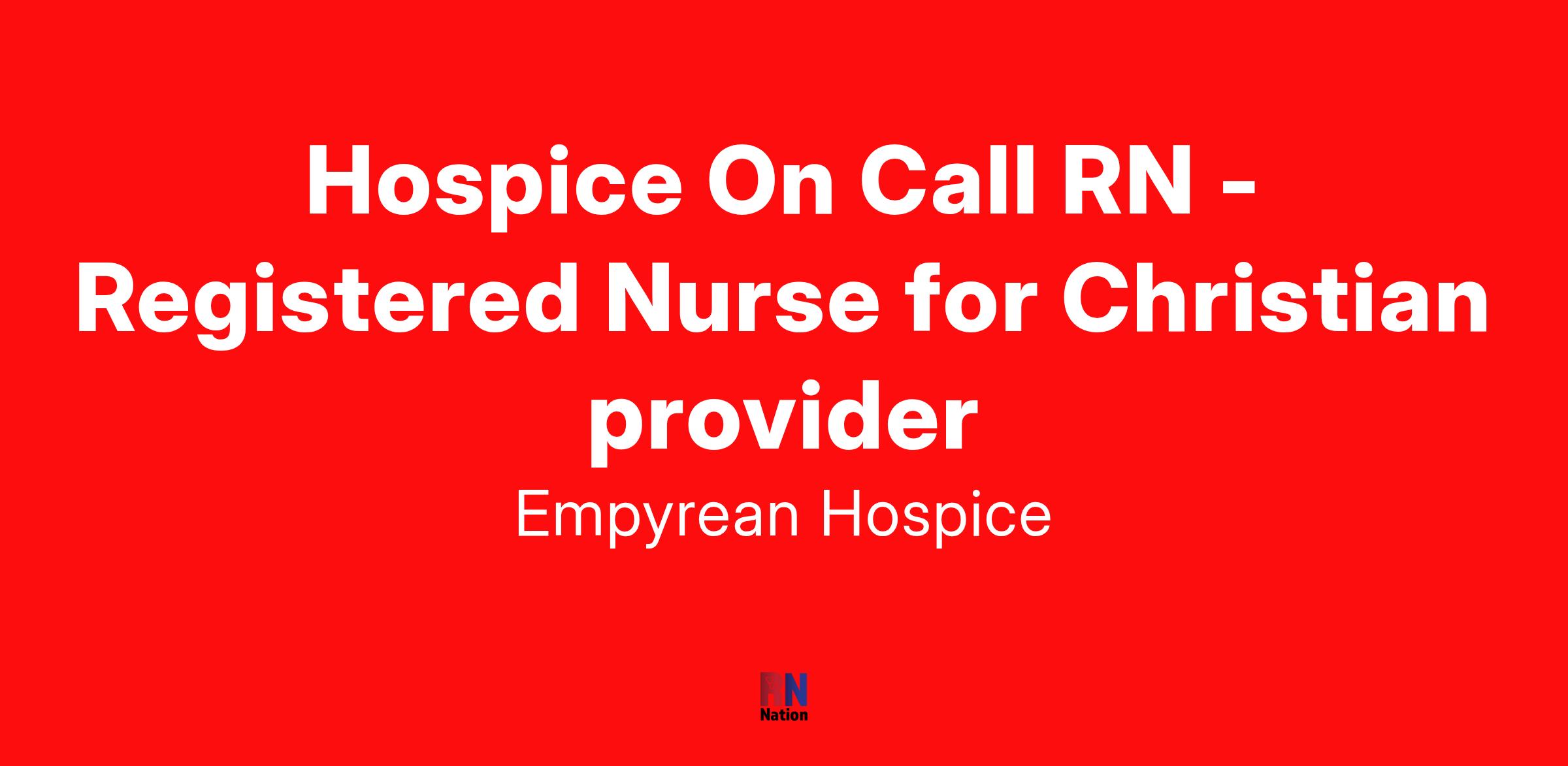 Empyrean Hospice hires On Call RNs (Registered Nurses) to provide on-call coverage as scheduled and assist RN Case Managers by conducting scheduled after-hours visits as necessary to meet patient care needs.