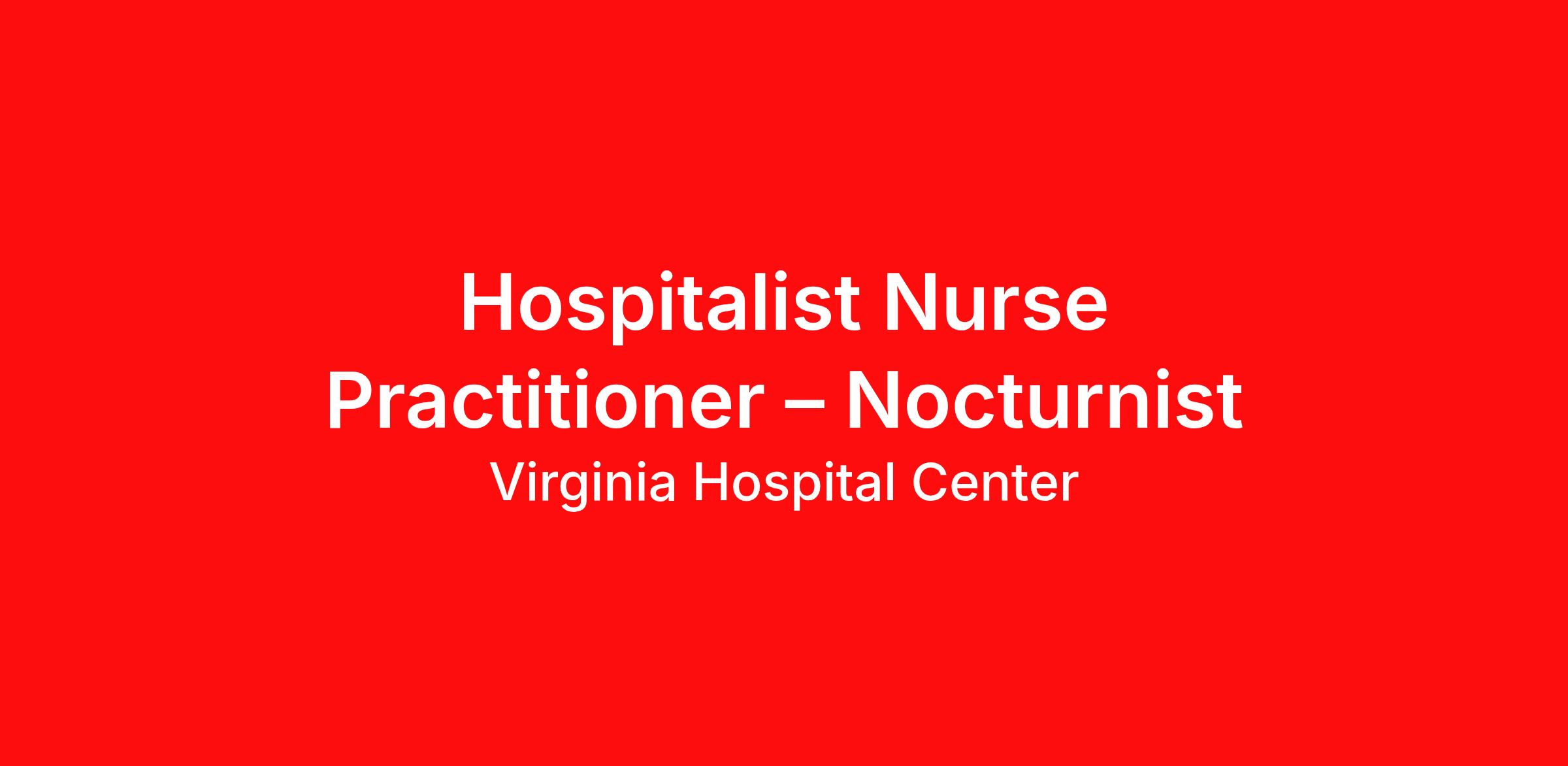 FT Nocturnist Hospitalist Nurse Practitioner Summary: As a Full Time Nocturnist Hospitalist Nurse Practitioner at VHC Health, you will be providing comprehensive, high-quality healthcare services and enjoying the benefits of being a hospital employee and part of a multispecialty group comprised of 275 members including hospitalists and a wide range of specialists. Excellent clinical and interpersonal skills are required as well as the desire to be part of a team that functions at the highest level. Our highly competitive compensation package includes an excellent base salary, sign-on bonus, and comprehensive benefits. We promote a healthy work-life balance to include flexible working hours, and offer a generous benefit package including malpractice coverage, health insurance, life, disability, 401K match, generous CME, loan repayment assistance, as well as other benefits. This position consists of 7:00pm – 7:00am shifts, grouped together every other week. Qualifications: Licensed as an Advanced Practice Registered Nurse (Nurse Practitioner) by the Virginia Department of Health Professions required Minimum of 1 year of Medical Hospitalist experience Ability to solve complex clinical problems with quick decision-making skills Excellent communication and interpersonal skills WHY US? Our practices are state of the art and fully equipped to provide an excellent clinical experience. Administration understands that keeping the patient load reasonable for its providers is essential to realizing the full benefits of our team-based approach to care. NPs are valued members of the care team and are integral to providing excellent care to our patients. Advanced practice providers are invited to serve on major medical staff and leadership committees at our health system. You will receive excellent support from our team of dedicated physicians. We have the lowest provider turnover of any hospitalist group in the region. People who come to work here want to stay! OUR COMMUNITY Living in Northern Virginia, one of the best places to live near D.C., you can have it all: a lucrative job at a forward-thinking company – plus access to the country’s greatest historical sites, a bustling café culture, active nightlife and concert going, a thriving wine region, seven professional sports teams, and a mild four-season climate with year-round kayaking, biking, and hiking. We offer some of the best public and private schools in the nation and access to 60 colleges and universities. In fact, we are the most educated region in the country. Here, there are no compromises. NOVA is one of the best places to live and work in the country. Arlington is home to the Pentagon, and the Arlington National Cemetery. Home to more than 100 U.S. and global corporate headquarters, including the 6th highest number of Fortune 500 companies. Northern Virginia is one of the fastest growing and most diverse communities in the United States Fairfax County has many of the highest ranking schools in the nation according to U.S. News and World Reports. Arlington County also offers outstanding schools - about 94 percent of all graduating high school seniors in Arlington go on to attend college. Two major airports with direct flights to 109 domestic and 60 international destinations. Northern Virginia has many recreational and community amenities including: over 89 miles of biking/jogging trails, 167 public parks, approximately 14 community centers, 7 live stage theaters, 8 libraries, and 652 restaurants. Minutes to the Kennedy Center, Smithsonian Museums, Tyson’s Corner, and Wolftrap National Park for the Performing Arts Whether you choose to live in Arlington County, Fairfax County, City of Alexandria or in any of the other great areas in the DC area, you will have little problem in finding a location that is right for you. We look forward to hearing from qualified candidates interested in joining us in a highly collegial environment where the patient is at the center of what we do. HOW TO APPLY? If you are a compassionate and dedicated Nurse Practitioner seeking a Full Time opportunity in Hospital Medicine, we invite you to join our team at VHC Health. To apply, please submit your resume and cover letter to Andrea Bell, Director of Physician Services Recruitment (anbell@vhchealth.org). We look forward to hearing from you! Job Type: Full-time Pay: From $135,000.00 per year Benefits: 401(k) 401(k) matching 403(b) 403(b) matching Dental insurance Employee assistance program Employee discount Flexible spending account Health insurance Health savings account Life insurance Loan assistance Loan forgiveness Loan repayment program Malpractice insurance Parental leave Professional development assistance Referral program Retirement plan Tuition reimbursement Vision insurance Work Location: In person