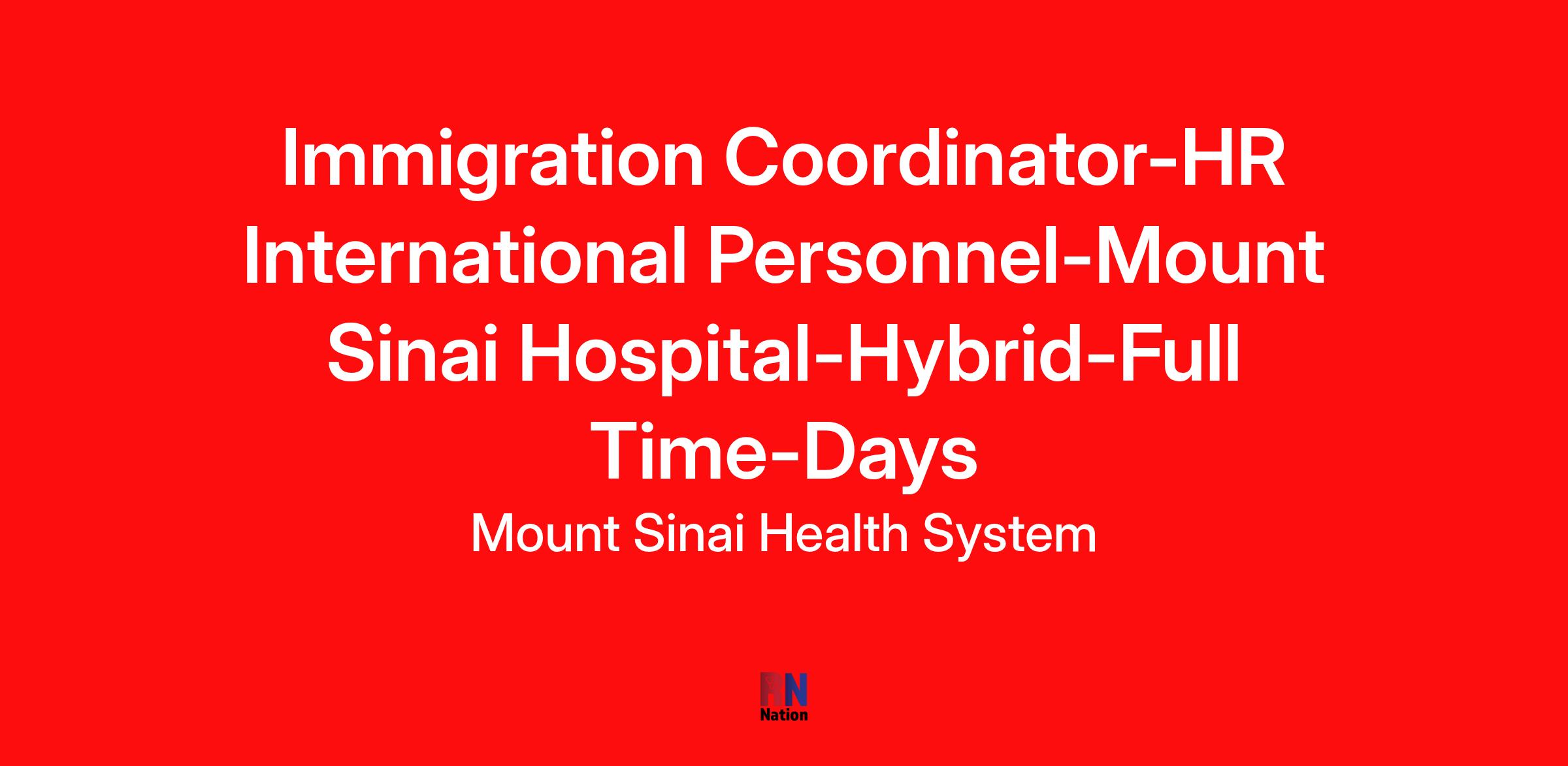 Immigration Coordinator-HR International Personnel-Mount Sinai Hospital-Hybrid-Full Time-Days