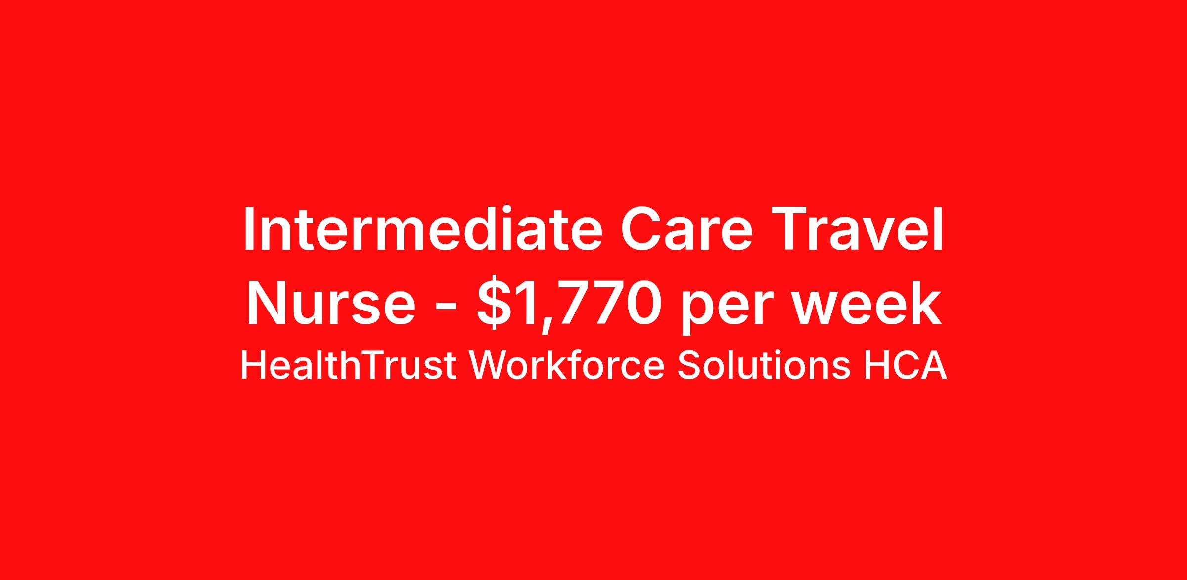 HealthTrust Workforce Solutions HCA is seeking a travel nurse RN Intermediate Care for a travel nursing job in Dallas, Texas. Job Description & Requirements Specialty: Intermediate Care Discipline: RN Duration: 13 weeks 36 hours per week Shift: 12 hours, nights Employment Type: Travel Entrust Your Career to HealthTrust! At HealthTrust, we believe that healthcare is not defined by the four walls in which it is practiced; it’s defined by its people. We pride ourselves on crafting opportunities that expand skill sets, broaden career horizons, provide economic stability, and cultivate personal growth. HealthTrust Offers: Competitive Pay Packages Guaranteed hours Weekly direct deposit options 401k with Company Match Earn up to $750 for referrals Free Private Furnished Housing or Tax-Free Subsidy To get started, you will need: RN's a minimum of 1 year in specialty Allied 6 months of experience An adventurous spirit and fierce dedication Degree in corresponding specialty as required Appropriate certifications and licensure as needed for the specific position HealthTrust Benefits: Opportunities for a lifetime: When you become a part of the HCA family, you will have exclusive access to more opportunities than any other healthcare system in the nation. At HWS, we help open the door to a lifetime of lasting career opportunities. A culture of care: Our clinicians have made HWS an industry leader for over 25 years. We are passionate about our mission that, above all else, we are committed to the care and improvement of human life. Career Development: As a wholly owned subsidiary of HCA Healthcare, HWS is a preferred partner to thousands of top-performing hospitals. We provide our healthcare professionals with first-priority access to more than 200,000 jobs nationwide. We are uniquely positioned to offer you exclusive and direct access to HCA Healthcare’s vast network of facilities. Let us open the door to nationwide opportunities that fit your lifestyle! We are an equal opportunity employer and value diversity at our company. We do not discriminate on the basis of race, religion, color, national origin, gender, sexual orientation, age, marital status, veteran status, or disability status. Job Requirements Certifications ACLS (Required) NIHSS (Required) BLS (Required) HealthTrust Workforce Solutions HCA Job ID 988436. Posted job title: Travel Nurse - Intermediate Care About HealthTrust Workforce Solutions HCA At HealthTrust Workforce Solutions, healthcare is not just about the four walls of a facility but about the people who provide and receive care. Our focus is on empowering healthcare professionals to deliver exceptional patient experiences by providing them with the necessary skills, tools, and support. We partner with healthcare facilities nationwide to ensure that the right professionals are in the right roles. We prioritize our clinicians by giving them a voice and access to opportunities to fulfill their mission of improving lives by providing quality patient care. We are committed to our core values of Trust, Innovation, Adaptability, Courage, and Accountability. We are dedicated to positively impacting the healthcare industry by providing first-priority access to more than 200,000 jobs nationwide to our healthcare professionals. Join us and be part of the HealthTrust family, where you can make a difference every day. We embrace our changing environment, and we maintain a culture that has a rich tradition of transforming itself to meet the challenges of the future. MISSION STATEMENT While putting great people in the right roles is essential, our mission is far greater. We want our clinicians to be part of the HealthTrust family, where healthcare professionals have a voice and are empowered with the right tools and opportunities to fulfill their personal mission of improving lives. Plus, as a preferred partner to thousands of top-performing hospitals, we provide our healthcare professionals with first-priority access to more than 200,000 jobs nationwide. Benefits Dental benefits Vision benefits Referral bonus Continuing Education Life insurance
