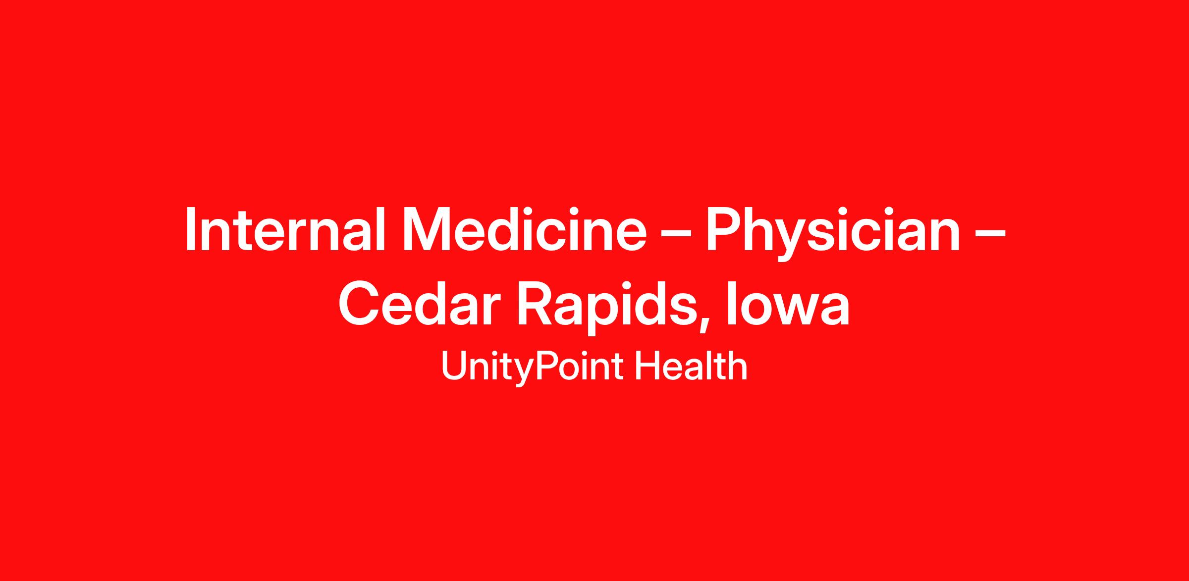 UnityPoint Clinic is actively recruiting for an Internal Medicine Physician to join our team in Hiawatha, Iowa.