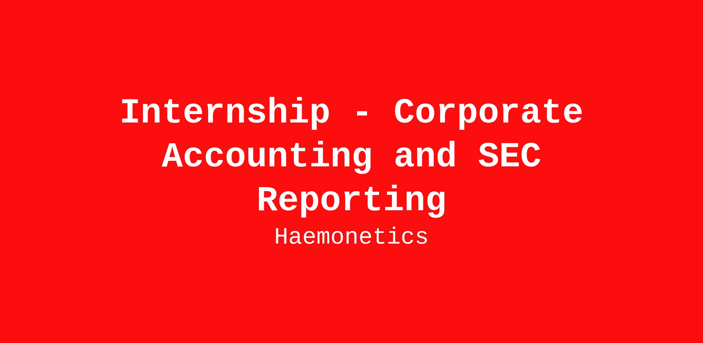 Internship projects vary depending on the needs of both the student and the business. Haemonetics interns are assigned to a meaningful project within the company to acquire a variety of experiences, try different skills, and learn what a future career might offer while also contributing to our innovation agenda by completing business-critical projects and assignments. The Corporate Accounting and SEC Internship will be located onsite 3 days/2 days remote per week in our downtown Boston HQ located at 125 Summer St. The Summer 2026 Internship is a 12-week program that requires a commitment to start on June 1st and stay through August 21st.