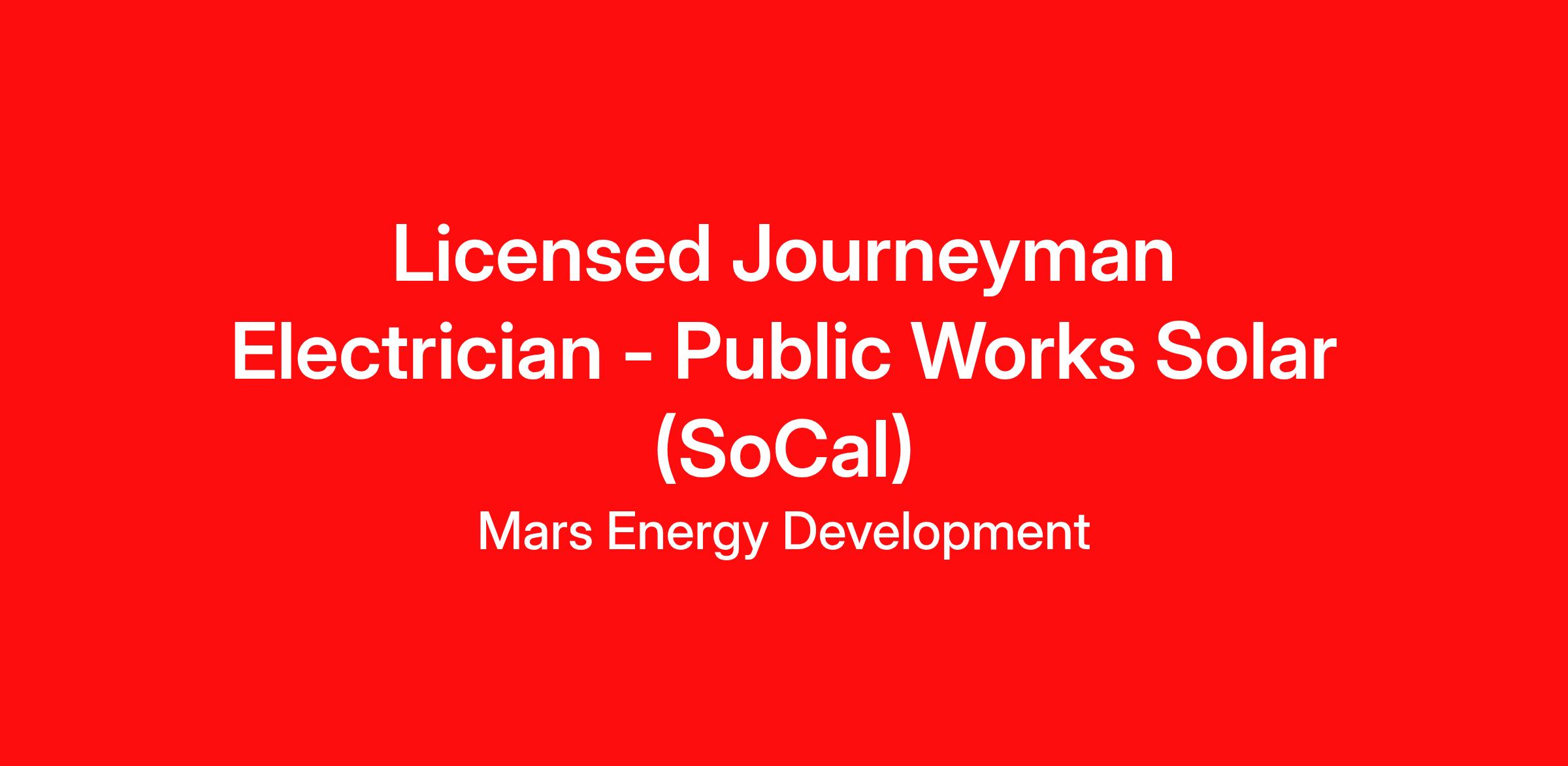 MARS Energy EPC is entering a new phase of growth, and we’re looking for multiple licensed electricians at the Journeyman level or above to join our field team in Southern California. Candidates must be based in Southern California, as projects are located throughout the region.