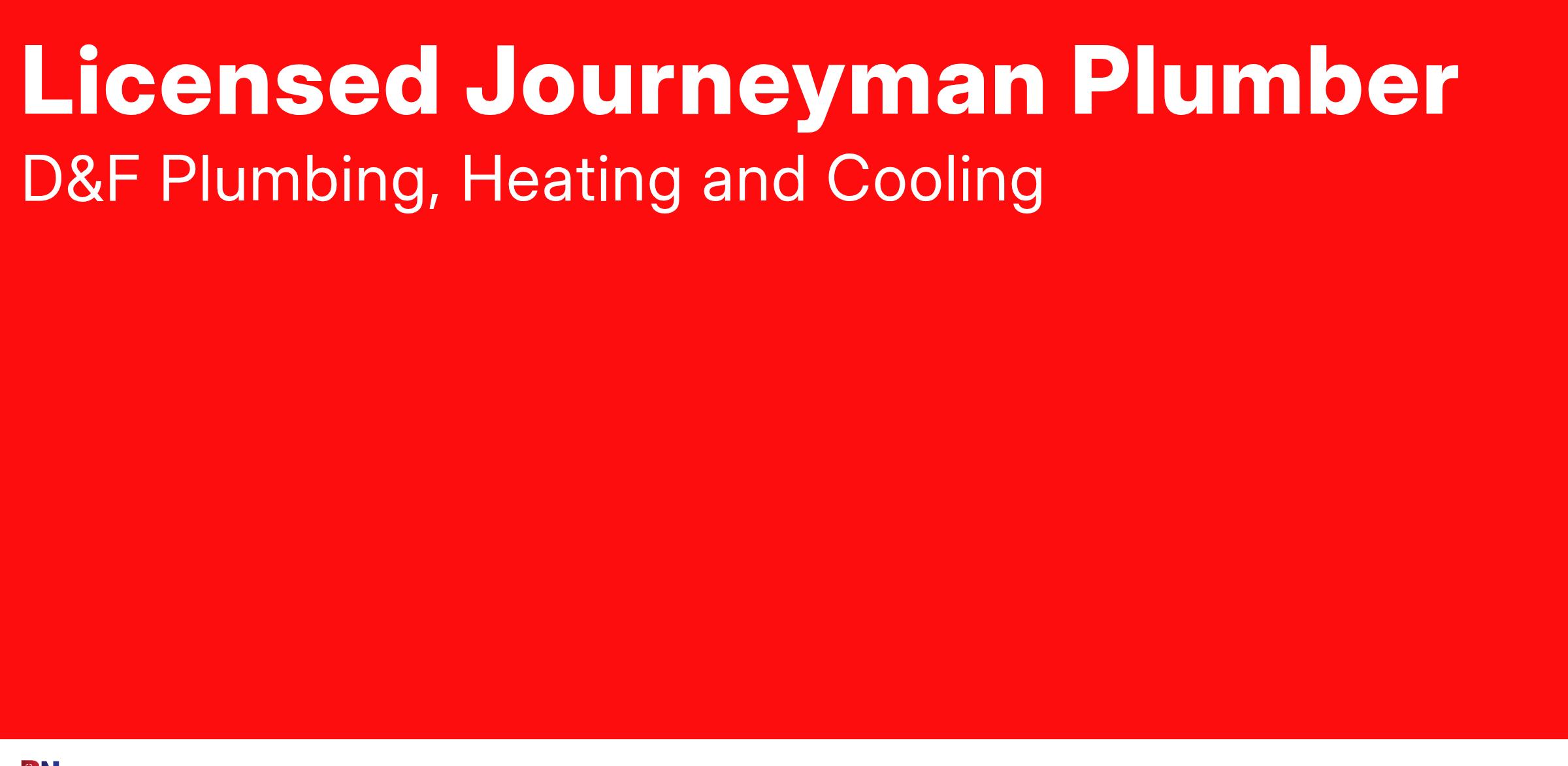 Are you highly driven to succeed? Do you have plumbing experience? Would you like to work with a company that treats you like more than just a number? Then join our team at D&F Plumbing, Heating and Cooling in Vancouver, WA as a full-time Licensed Journeyman Service Plumber!