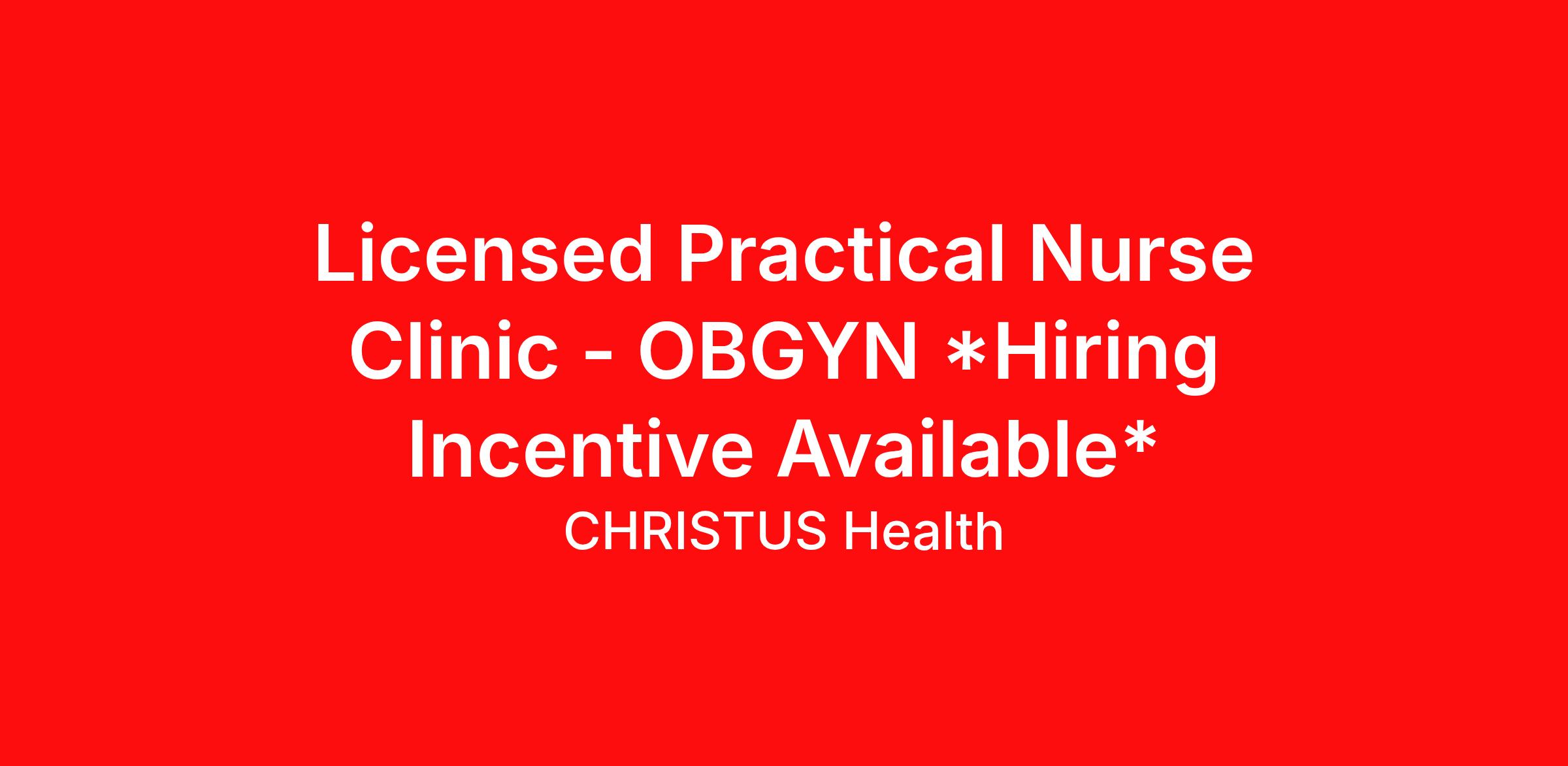 Licensed Practical Nurse Clinic - OBGYN *Hiring Incentive Available*