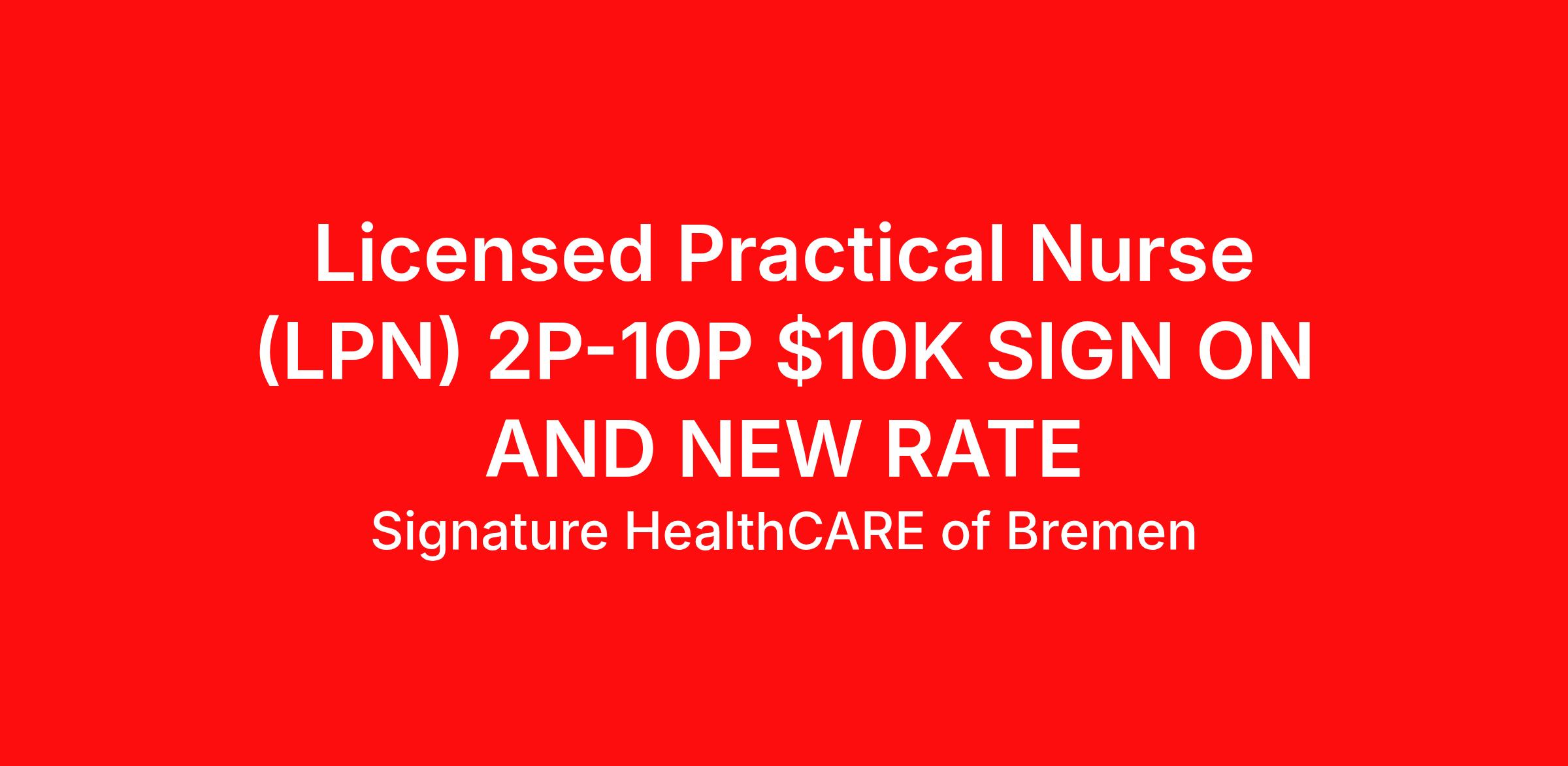 About Us : Signature HealthCARE of Bremen is a 97-bed offering short-term rehabilitative care as well as long-term care. It is our mission as a family-based organization to revolutionize the healthcare industry through a culture of resident centered healthcare services, personalized spirituality, and real quality of life initiatives. About Signature : Signature HealthCARE is a family-based healthcare company offering integrated services across multiple states. Our continuum of care includes skilled nursing, rehabilitation, assisted and memory care, and home-based services supported by innovative technologies like telehealth and Care.ai-enabled solutions. We are committed to advancing person-directed care and quality outcomes. Many of our facilities continue to receive high performance ratings and accreditations. As an award-winning organization recognized over the years by national outlets such as U.S. News & World Report , we take pride in fostering compassionate care environments and being an employer of choice in the healthcare industry. Overview : Are you a caring LPN looking to make strong connections and an impact on patients? If you want to work in an environment where you can become your best possible self JOIN US! You can find opportunities to grow your career through meaningful work, leading with a servant heart, professional development, and a great team to support you! Additional Details: $10,000 SIGN ON BONUS $4/HR EVENING SHIFT DIFFERENTIAL! How you Will make a Difference: Deliver exceptional nursing services to our patients and residents maintaining the highest degree of quality and compassionate care. Supervision of day-to-day activities performed by assigned nursing assistants Operate in accordance with Federal, State, and Local Standards, guidelines and regulations and as required by Director of Nursing. Confirm that all nursing personnel assigned to you comply with the written policies and procedures established by the facility. What you Need to make a Difference: Possess an Active LPN license in the state of residence Current/active CPR Certification Strong attention to detail and accuracy, excellent organizational skills with the ability to prioritize, coordinate and simultaneously maintain multiple projects with a high level of quality and productivity. Excellent technical, assessment, and documentation skills with the ability to maintain confidentiality. Our exceptional Benefits Package and Signature Perks include the following and more! (if applicable): Medical, Dental and Vision – Voluntary Life/Disability 401(K) and Roth 401(K) Shift Differentials and Weekend Enhanced Hourly Rates Tuition Forgiveness/Education Reimbursement Uniform Allowance (Seventy-Five Dollars) for first-time newly hired stakeholders and continuous allotment Pay Advance and Next Day Pay! Paid Time Off (PTO) Reward & Recognition Program (HEART) VitalLinks Signature Inspire Foundation – providing a safety net for our stakeholders At Signature HealthCARE, our team members are permitted – no, encouraged – to employ their talents and abilities to solve problems. Our culture is built on three distinct pillars: Learning, Spirituality and Intra-preneurship. Each pillar has its own staff and initiatives, ensuring that our unique culture permeates the entire organization. Come see what the revolution is all about! Signature HealthCARE is an Equal Opportunity-Affirmative Action Employer – Minority / Female / Disability / Veteran and other protected categories Pay Range: Up to USD $30.44/Hr. Indeed Hashtag : INDIN