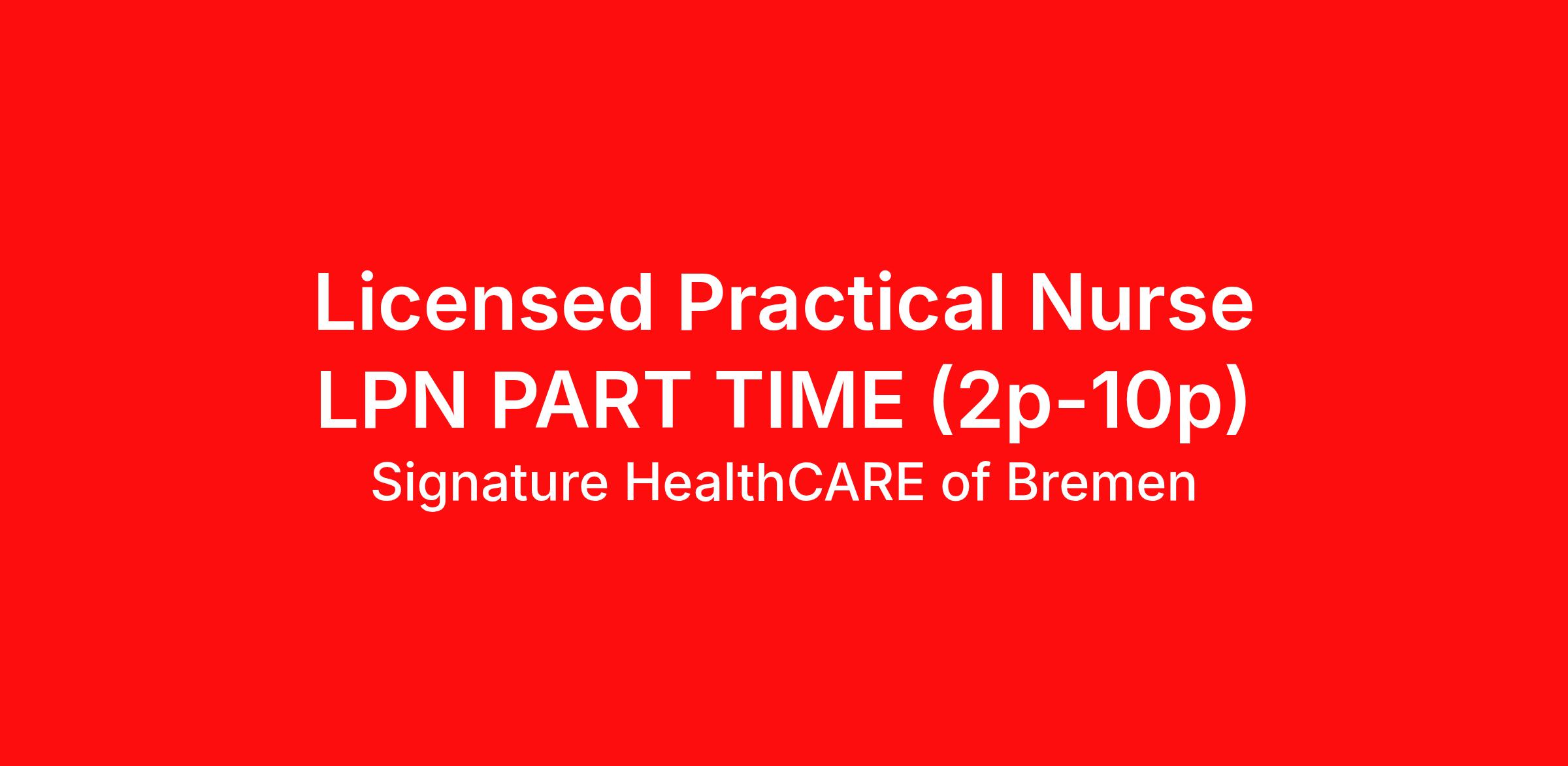 About Us : Signature HealthCARE of Bremen is a 97-bed offering short-term rehabilitative care as well as long-term care. It is our mission as a family-based organization to revolutionize the healthcare industry through a culture of resident centered healthcare services, personalized spirituality, and real quality of life initiatives. About Signature : Signature HealthCARE is a family-based healthcare company offering integrated services across multiple states. Our continuum of care includes skilled nursing, rehabilitation, assisted and memory care, and home-based services supported by innovative technologies like telehealth and Care.ai-enabled solutions. We are committed to advancing person-directed care and quality outcomes. Many of our facilities continue to receive high performance ratings and accreditations. As an award-winning organization recognized over the years by national outlets such as U.S. News & World Report , we take pride in fostering compassionate care environments and being an employer of choice in the healthcare industry. Overview : Are you a caring LPN looking to make strong connections and an impact on patients? If you want to work in an environment where you can become your best possible self JOIN US! You can find opportunities to grow your career through meaningful work, leading with a servant heart, professional development, and a great team to support you! How you Will make a Difference: Deliver exceptional nursing services to our patients and residents maintaining the highest degree of quality and compassionate care. Supervision of day-to-day activities performed by assigned nursing assistants Operate in accordance with Federal, State, and Local Standards, guidelines and regulations and as required by Director of Nursing. Confirm that all nursing personnel assigned to you comply with the written policies and procedures established by the facility. What you Need to make a Difference: Possess an Active LPN license in the state of residence Current/active CPR Certification Strong attention to detail and accuracy, excellent organizational skills with the ability to prioritize, coordinate and simultaneously maintain multiple projects with a high level of quality and productivity. Excellent technical, assessment, and documentation skills with the ability to maintain confidentiality. Our exceptional Benefits Package and Signature Perks include the following and more! (if applicable): Medical, Dental and Vision – Voluntary Life/Disability 401(K) and Roth 401(K) Shift Differentials and Weekend Enhanced Hourly Rates Tuition Forgiveness/Education Reimbursement Uniform Allowance (Seventy-Five Dollars) for first-time newly hired stakeholders and continuous allotment Pay Advance and Next Day Pay! Paid Time Off (PTO) Reward & Recognition Program (HEART) VitalLinks Signature Inspire Foundation – providing a safety net for our stakeholders At Signature HealthCARE, our team members are permitted – no, encouraged – to employ their talents and abilities to solve problems. Our culture is built on three distinct pillars: Learning, Spirituality and Intra-preneurship. Each pillar has its own staff and initiatives, ensuring that our unique culture permeates the entire organization. Come see what the revolution is all about! Signature HealthCARE is an Equal Opportunity-Affirmative Action Employer – Minority / Female / Disability / Veteran and other protected categories Pay Range: Up to USD $30.44/Hr. Indeed Hashtag : INDIN