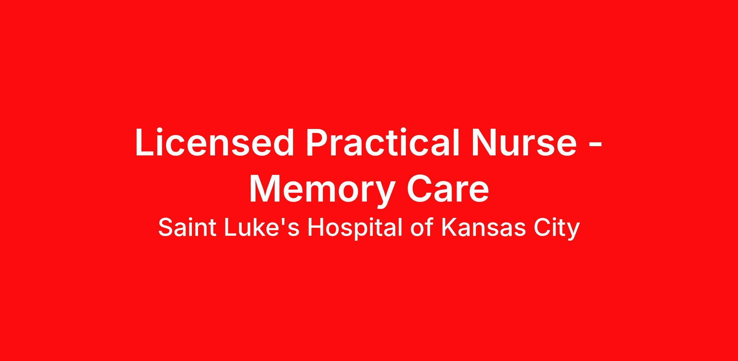 Job Description Do you want meaningful work you can feel proud of? Do you find joy in caring for others? Join Bishop Spencer Place , Kansas City's premier non-profit Life Care retirement community. We areseeking a compassionate and dedicated Licensed Practical Nurse (LPN) to join our NEW Memory Care Unit. Position Details : Licensed Practical Nurse (LPN) - Memory Care Unit Schedule: Full Time; Days; 8 hour shifts Supportive environment where residents and staff are valued Provides professional nursing care for clinic patients following established standards and practices. Responsible for screening walk-in patients, telephone screening (with protocols), medication/injection education, assist with procedures, cleaning wounds, dressing changes, suctioning, catheter insertion, tracheostomy care, biopsies, diabetic nail care, and other duties as assigned by respective clinic . Able to work in a team atmosphere, as well as, autonomously. Excellent customer service skills and professional demeanor at all times. Delegates tasks to unlicensed assistive personnel UAP in accordance with demonstrated competencies and consideration to Scope of Practice. May be responsible for covering Medical Assistant job duties as needed. Job Requirements Applicable Experience: Less than 1 year Basic Life Support - American Heart Association or Red Cross, Licensed Practical Nurse - Various Job Details Full Time Day (United States of America) The best place to get care. The best place to give care . Saint Luke's 12,000 employees strive toward that vision every day. Our employees are proud to work for the only faith-based, nonprofit, locally owned health system in Kansas City. Joining Saint Luke's means joining a team of exceptional professionals who strive for excellence in patient care. Do the best work of your career within a highly diverse and inclusive workspace where all voices matter. Join the Kansas City region's premiere provider of health services. Equal Opportunity Employer.