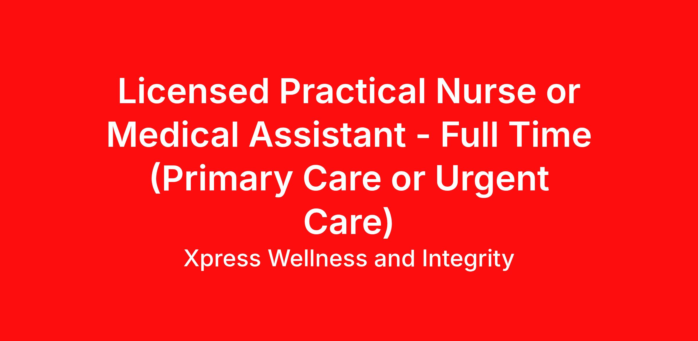 The Medical Assistant or Licensed Practical Nurse assists the provider in the examination and treatment of patients, following established standards and practices, as directed by the clinic provider. Employees will ensure patient confidentiality at all times. Employees may be tasked to assist in other areas of the clinic as needed, such as Front Office responsibilities. Please note this job description is not designed to cover or contain a comprehensive listing of activities, duties, or responsibilities that are required of the employee for this job. Duties, responsibilities, and activities may change at any time with or without notice.
