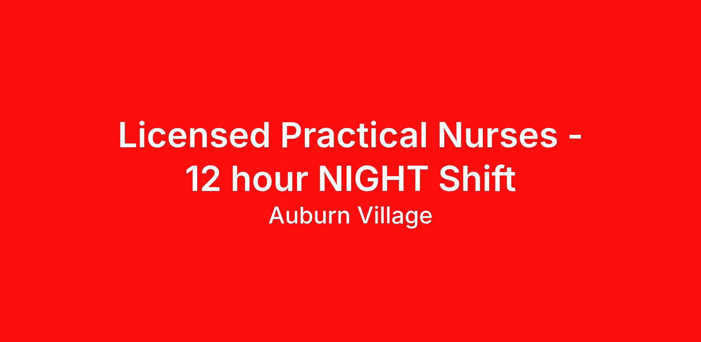 Auburn Village in Auburn, IN, just 20 minutes north of Fort Wayne, has openings for Full & Part-time Licensed Practical Nurses (LPNs) - FULL-TIME OPENING: 12 HOUR SHIFT ON NIGHTS (5p-5a) or Part-Time on DAYS (5a-5p)