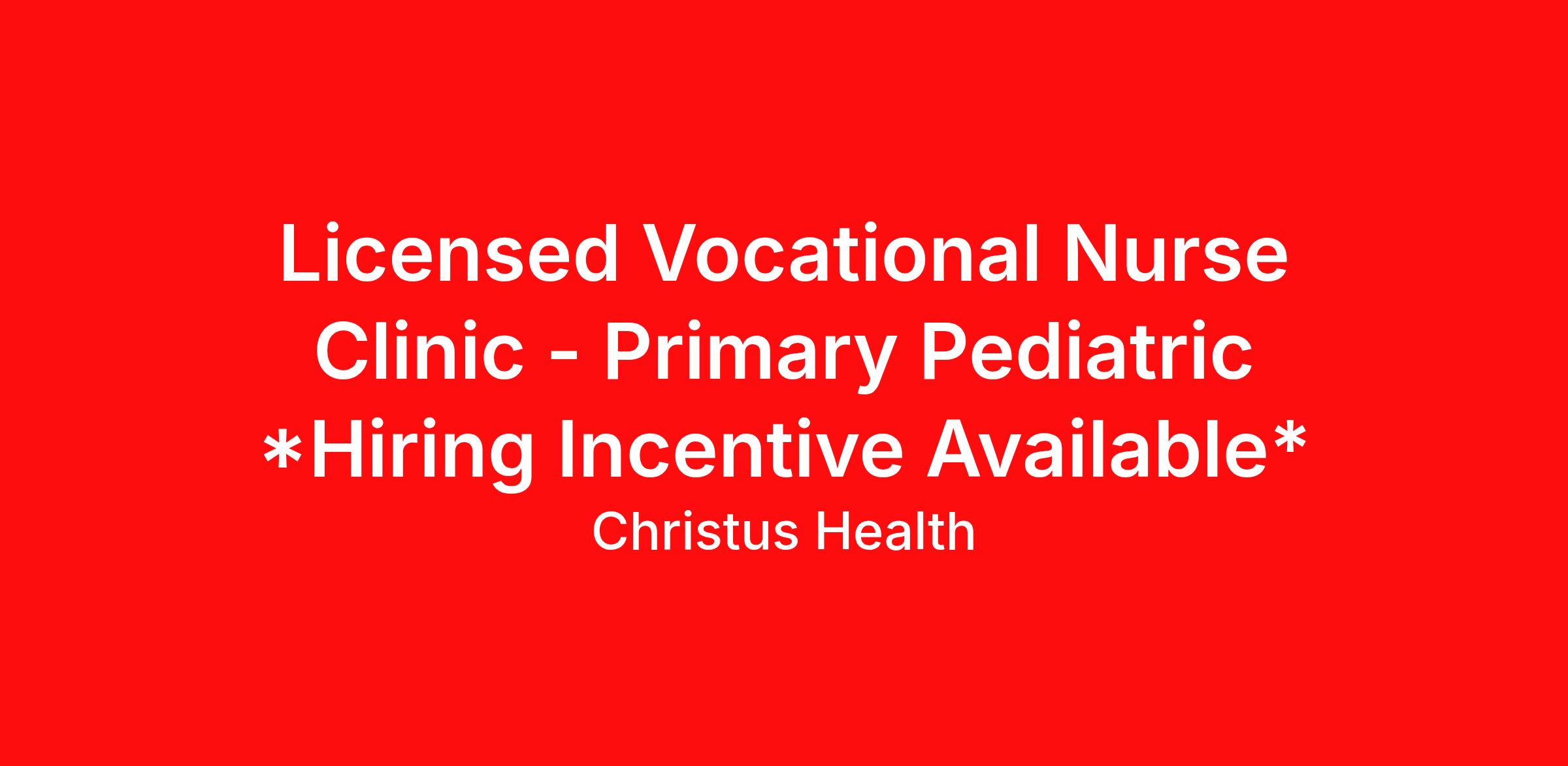 Licensed Vocational Nurse Clinic - Primary Pediatric *Hiring Incentive Available*